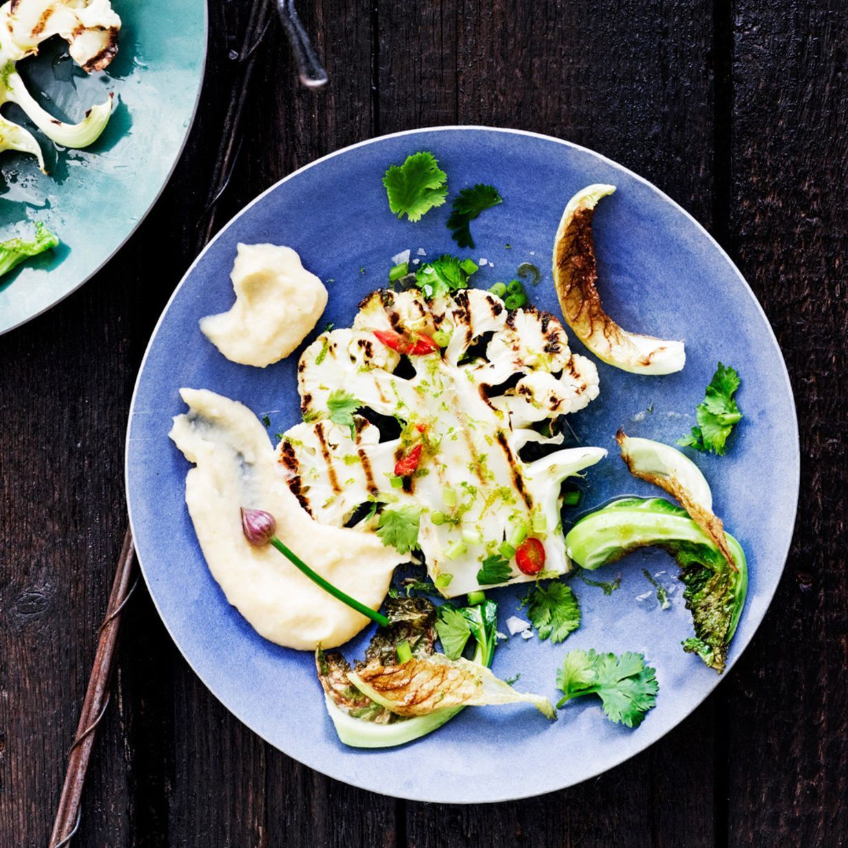 Kukkakaalia kukkakaalilla? Kyllä! Nimittäin kukkakaali taipuu paksuina viipaleina grillattaviksi pihveiksi, kun taas leikatessa irtoavat muruset pääsevät porisemaan kastikkeeseen cheddarjuuston seuraksi. Valkosipulilla ja korianterilla maustettu grillauskastike pitää huolen, ettei näistä kukkakaalipihveistä puutu makua.