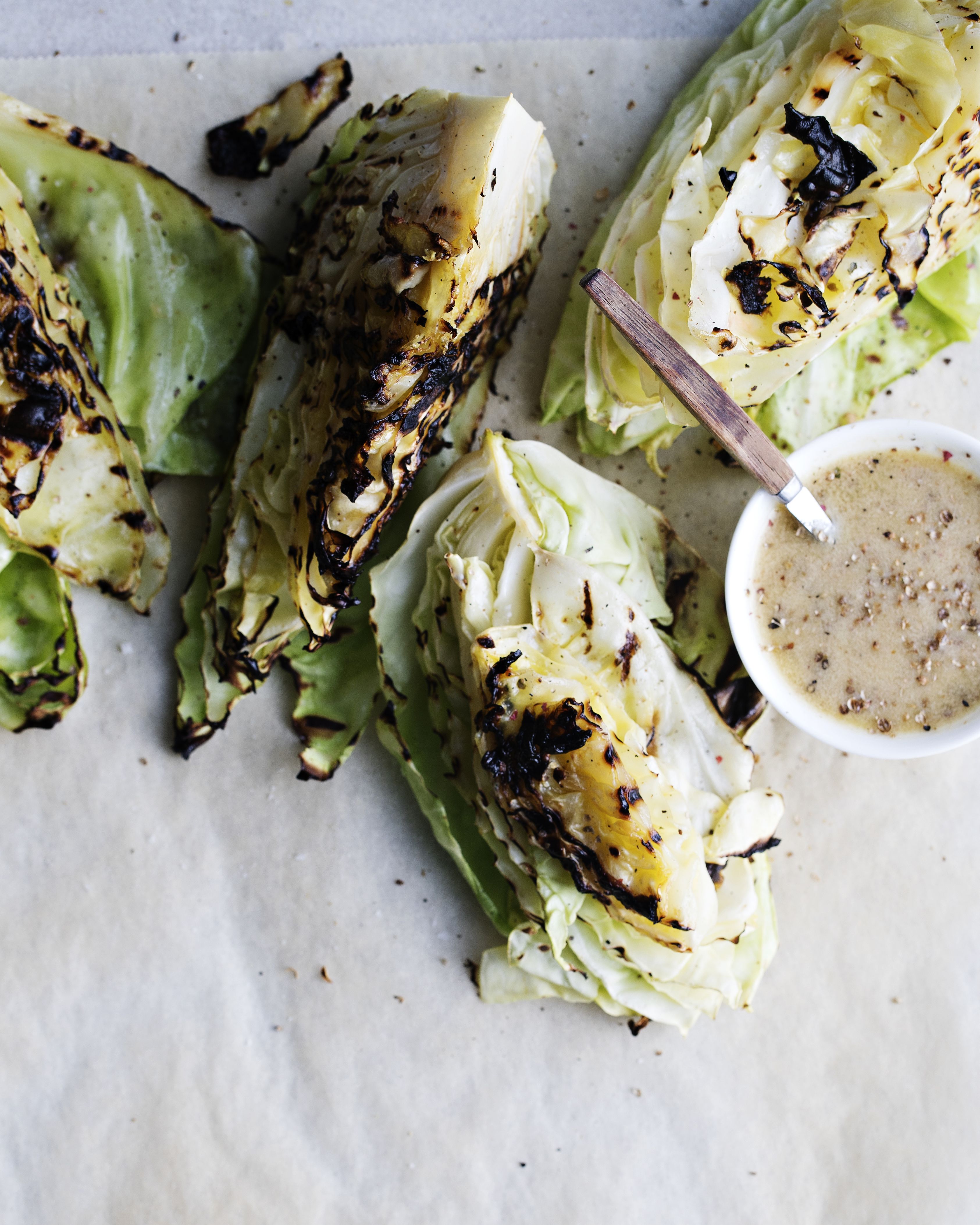 Grillattu kaali sopii melkein minkä vain kesäruoan lisukkeeksi. Kun kaalilohkot haluaa tarjota alkuruokana, kastikkeeseen kannattaa panostaa. Esimerkiksi täyteläinen tahinikastike sopii hyvin kaalin seuraan.