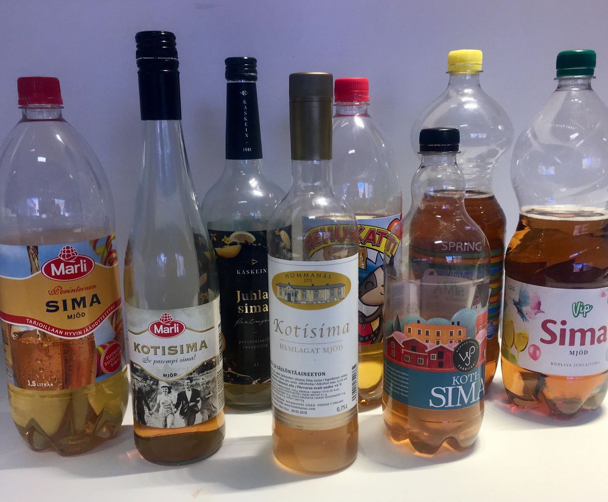Lisäksi testasimme seuraavat vaihtoehdot Vip sima, Marlin kotisima, Kaskein juhlasima, Marli perinteinen sima, Mehukatti sima, Spring sima (alkoholiton).
