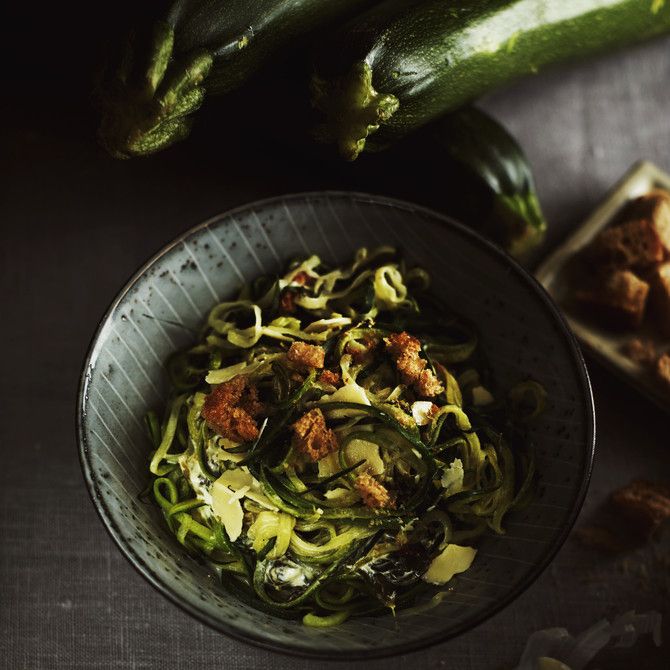 Kesäkurpitsalla voi korvata pastan, jos haluaa välttää hiilareita ja jauhoja. Pastan kevyempi versio tehdään vuolemalla kesäkurpitsasta nauhoja, jotka keitetään pastan tapaan suolalla maustetussa vedessä. Keittoaika on kuin tuorepastalla, vain muutaman minuutin. Kokeile esimerkiksi kesäkurpitsa"pastaa" pinaattikastikkeella. Tähän ohjeeseen saat sujautettua myös edellispäivän leivänkannikat, jos paistat ne krutongeiksi tilkassa öljyä!