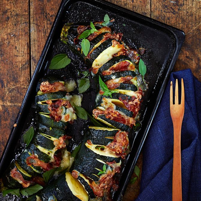 Kesäkurpitsan voi valmistaa uunimakkaran korvikkeeksi. Kun teet tämän ohjeen ilman kinkkua, saat kasvisruuan, joka on terveellisempi ja raikkaampi kuin lauantai-illan perinteinen uunimakkara.