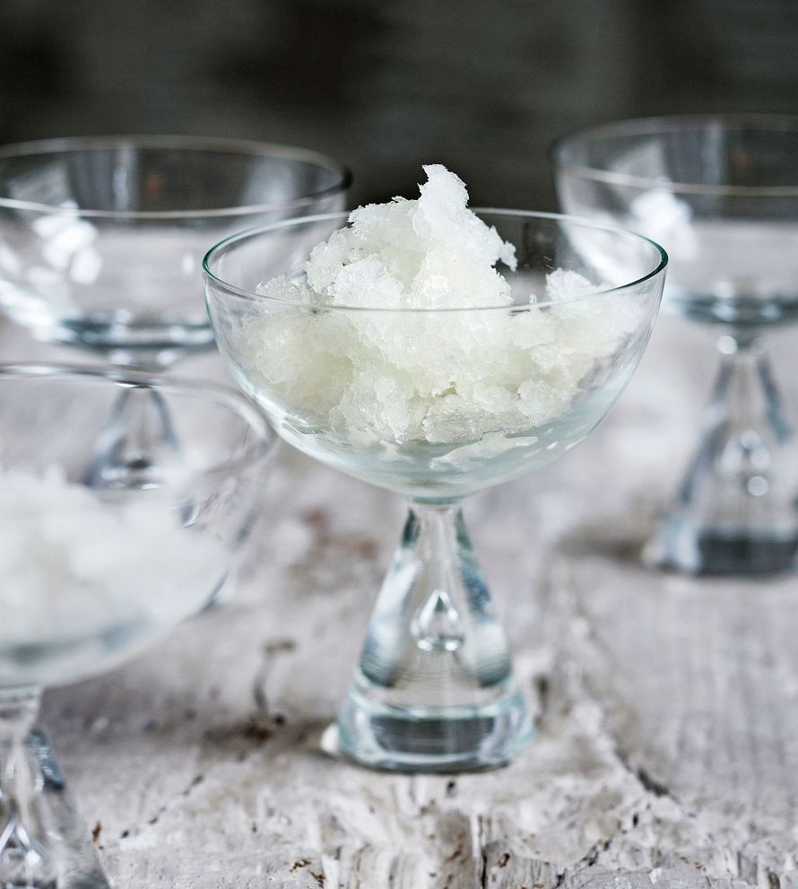 Samppanjagranita on raikas jälkiruoka suuren illallisen jälkeen. Jäädyke toimii myös väliruokana. Granitan voi tehdä pakastimeen valmiiksi vaikka pari päivää ennen h-hetkeä. Lopuksi se rouhitaan haarukalla hileiseksi. Katso samppanjagranitan ohje täältä.