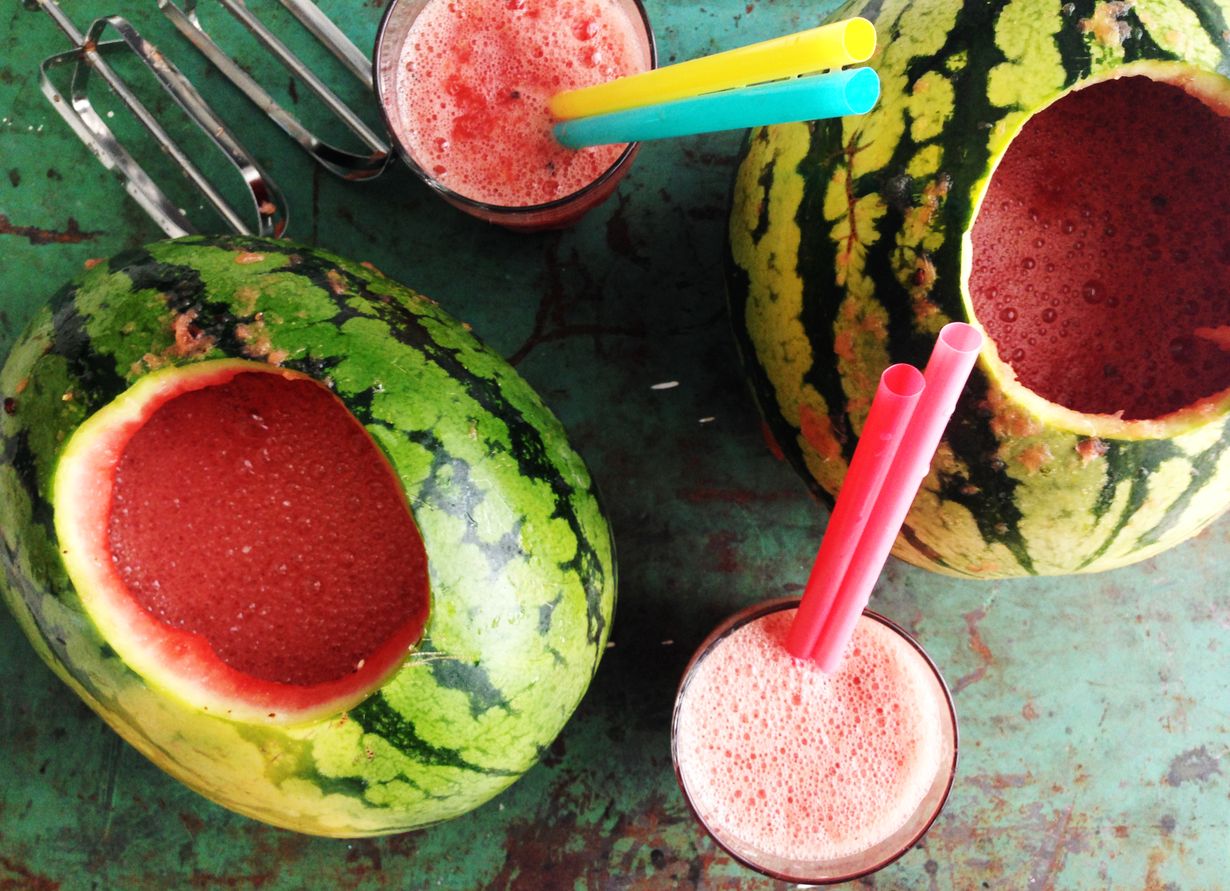 Tee meloniin reikä ja vatkaa se smoothieksi. Helppoa, mutta sotkuista!