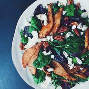 - Tarkista jääkaapin juureslaari, pilko juurekset, pyöräytä ne suolalla ja pippurilla maustetussa öljyssä ja paahda 225-asteisessa uunissa napakan pehmeiksi. Lisää salaattiin kylminä tai lämpiminä. Juurekset tekevät salaatista ajankohtaisen ja ruokaisan.