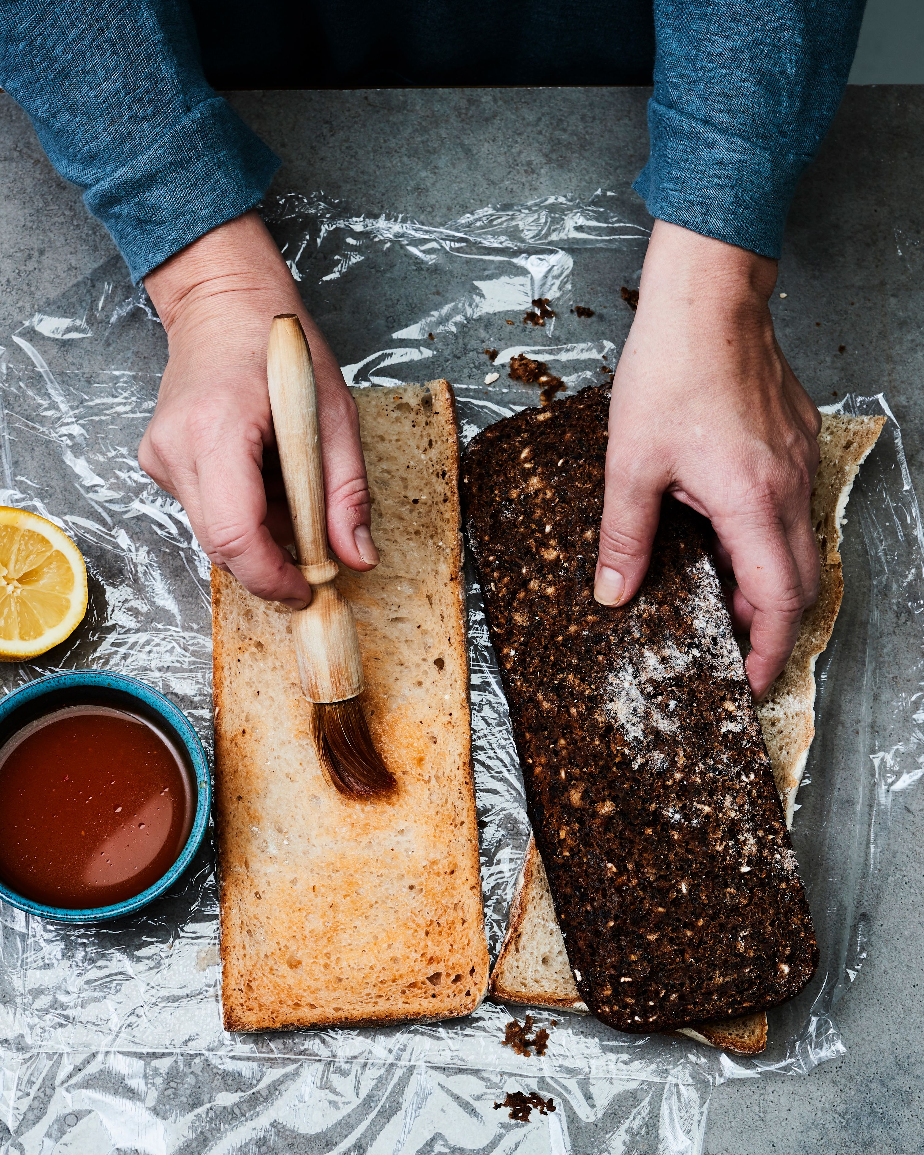 Leivästä se lähtee. Valitse voileipäkakkuun maistuva, vaalea juurileipä tai jyväinen grahamleipä. Yhdistä sen kanssa ruisvuokaleipää, ruissihtileipää tai saaristolaisleipää. Jos käytät paahtoleipää, älä kostuta kakkua lainkaan, vaan tee siitä heti kasaamisen jälkeen tarjottava pikakakku.