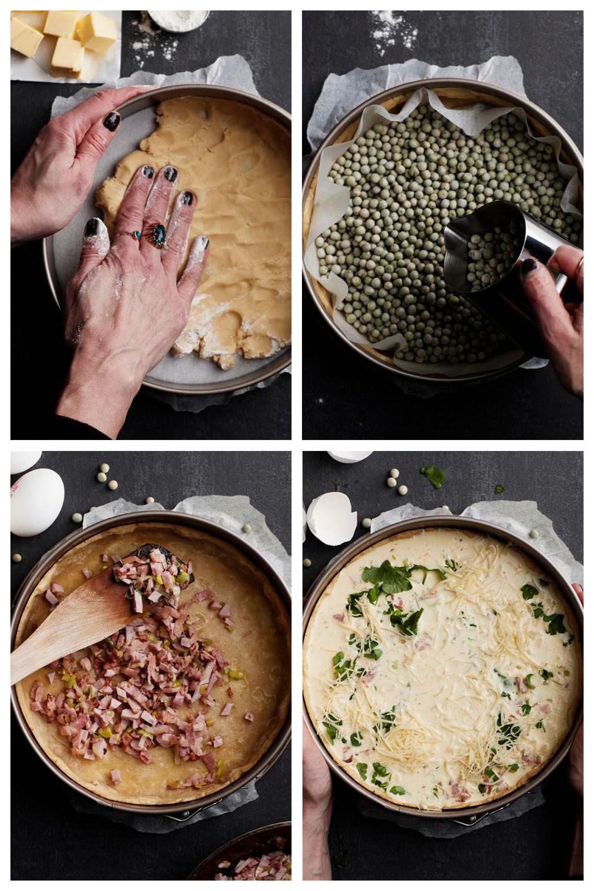 - Esipaistaminen on tärkeä vaihe. Näin pohja ei pääse vettymään raskaista ja runsaista täytteistä. Korkeat reunat säilyttävät muotonsa esipaistossa helpolla ja edullisella kikalla, nimittäin kuivatuilla herneillä. Herneet kannattaa pakata jäähtyneinä odottamaan seuraavaa piirakan paistokertaa.