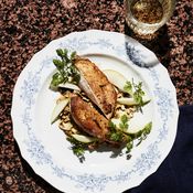 1. Mausta rintafileet suolalla ja laita ne kylmään pannuun öljyyn nahkapuoli alaspäin. Säädä liesi miedolle lämmölle ja anna rintafileiden paistua noin 5 minuuttia tai kunnes pinta on kullanruskea. Käännä ja paista vielä 1 minuutti.