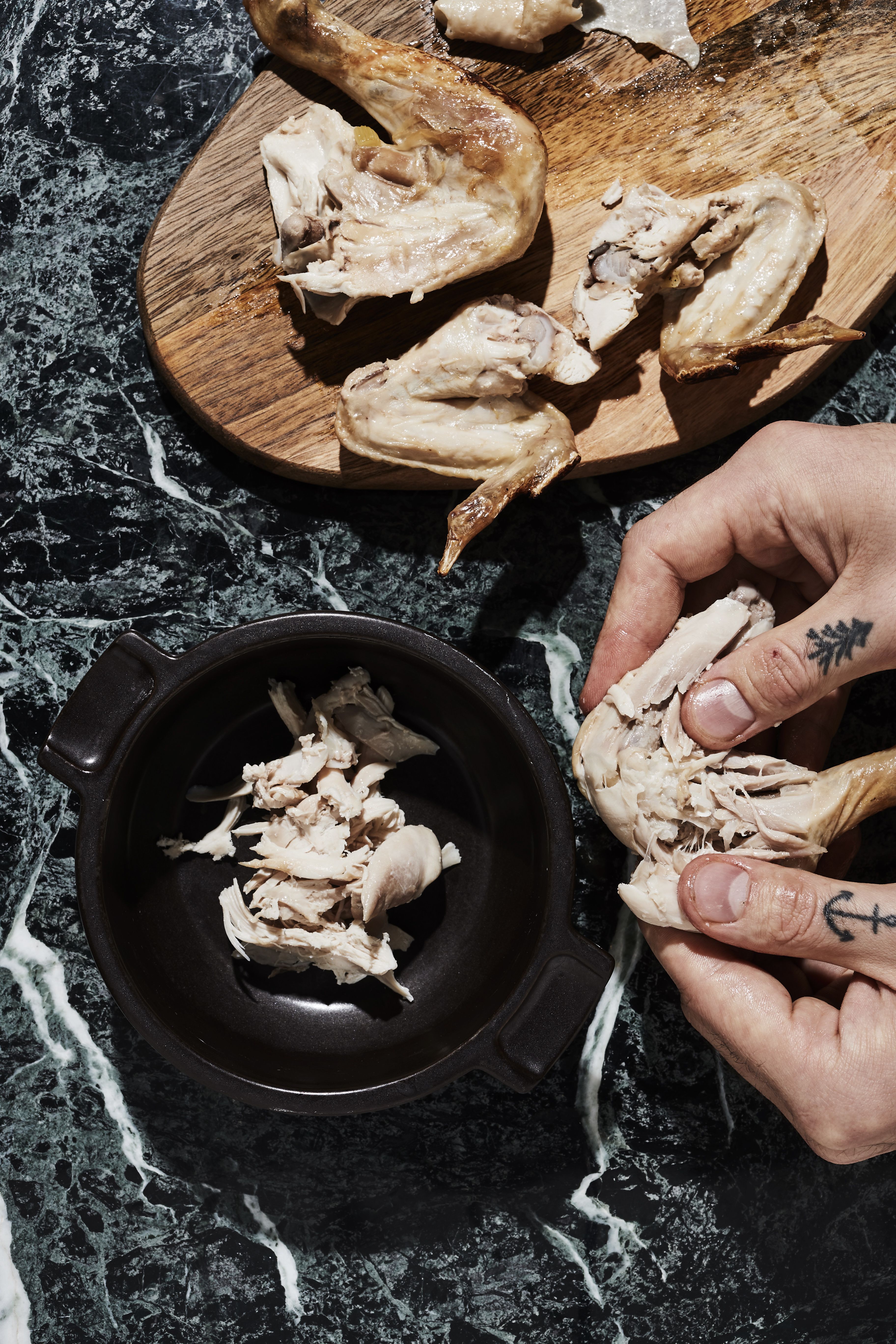 3. Poista kypsä ranka liemestä, irrota koivet ja siivet.