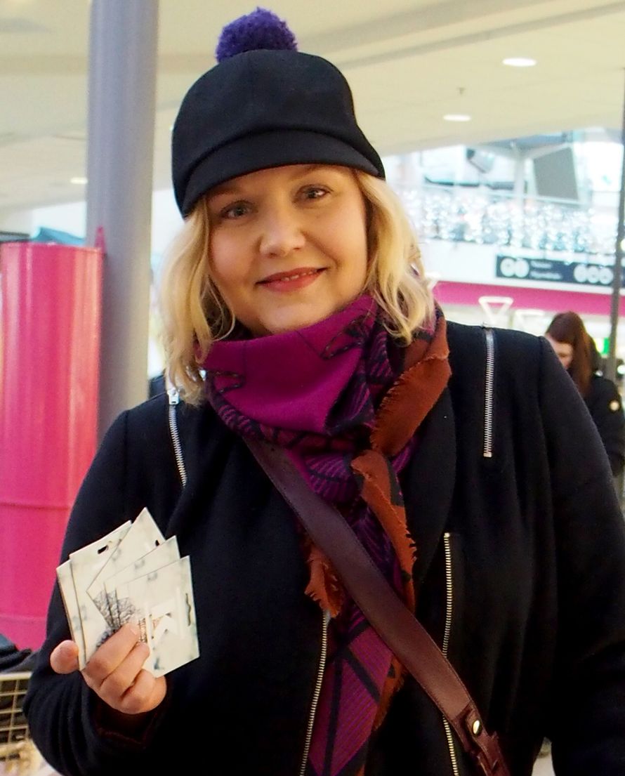 Soitimme Leealle iloisen puhelun heti arvonnan jälkeen ja tavoitimme hänet - mistäpä muualta - kuin ruokakaupasta. Leea on kahden pienen lapsen äiti ja tällä hetkellä äitiysvapaalla, joten ruokaostoksilla käydään lähes päivittäin. Voitosta häkeltynyt Leea kertoo unohtaneensa puhelun jälkeen puolet ostoksista, joten palkinnonluovutusreissulle hän on varautunut vanhalla kunnon ostoslistalla. Tarkoituksena oli aluksi hankkia päivän ruokatarpeet ja miettiä rauhassa sen jälkeen, mitä kaikkia herkkuja lahjakortilla jouluksi ostetaan.