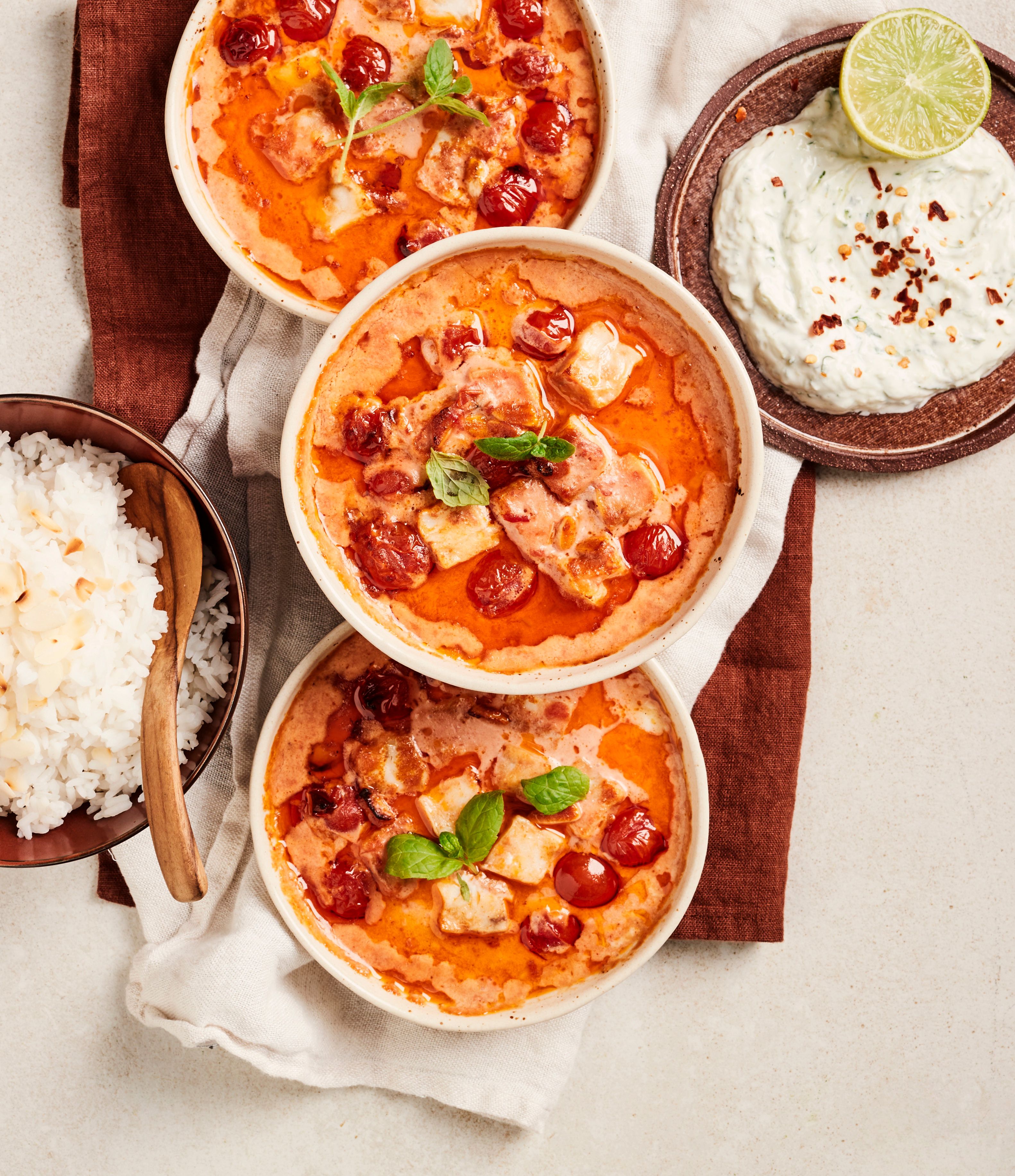 Kana vaihtuu kalaan! Tällä kertaa kookoscurry saa seurakseen valmiit kalakuutiot, jotka maustuvat meheviksi uunissa kastikkeen kanssa. Tällä tavoin kastiketta ei tarvitse turhaan sekoitella ja kalapalat pysyvät hyvin kasassa. Valmista aterian kylkeen raikas jogurttikastike ja tarjoile esimerkiksi basmatiriisin kanssa.