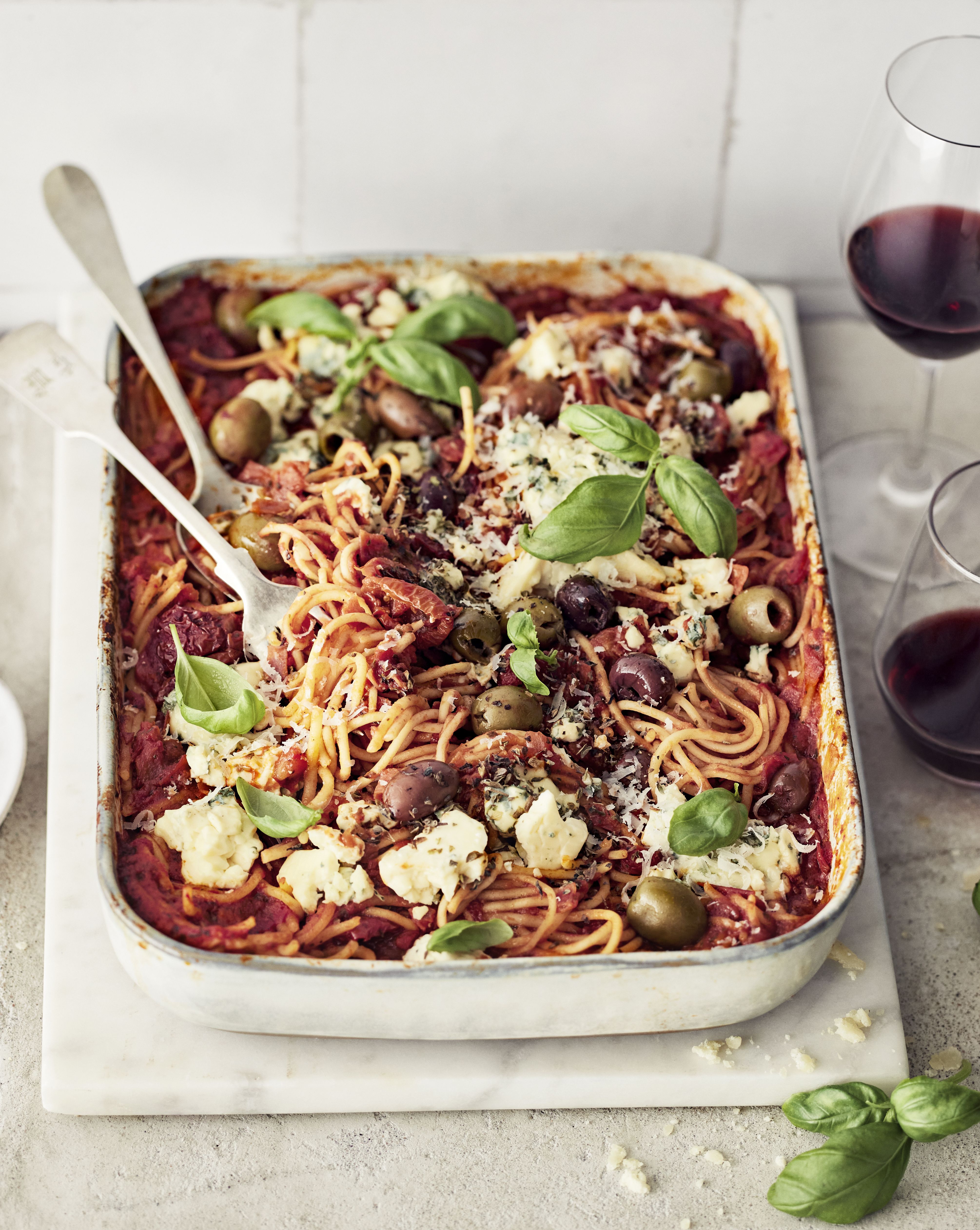 Herkullisen uunispagetin valmistuksessa aktiivinen kokkausaika jää pieneksi, mutta kypsennys vaatii hieman odottelua. Näppärästi yhdessä astiassa kypsyvä ruoka on omiaan silloin, kun tiskien määrä halutaan pitää minimissä. Tässä vuoassa maistuu pastan lisäksi salami, parmesaani sekä tuore basilika. Tomaattikastike tuo kokonaisuuteen ihanaa raikkautta ja hapokkuutta.