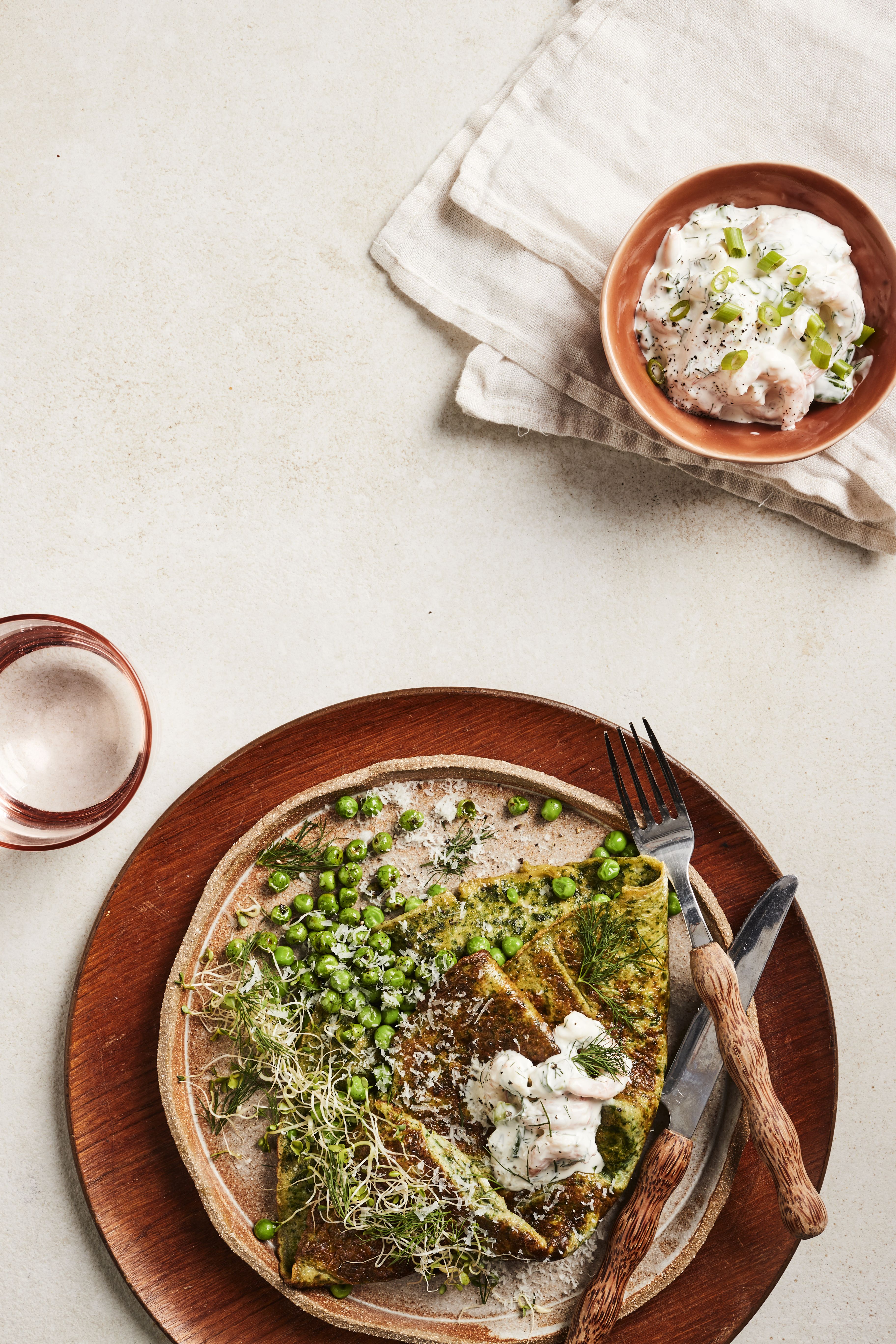 Vihreillä kasviksilla höystetty munakas on nopea ja ravitseva ateria esimerkiksi lounaaksi. Nopealla skagenröralla siitä saa helposti entistä ruokaisamman aterian.