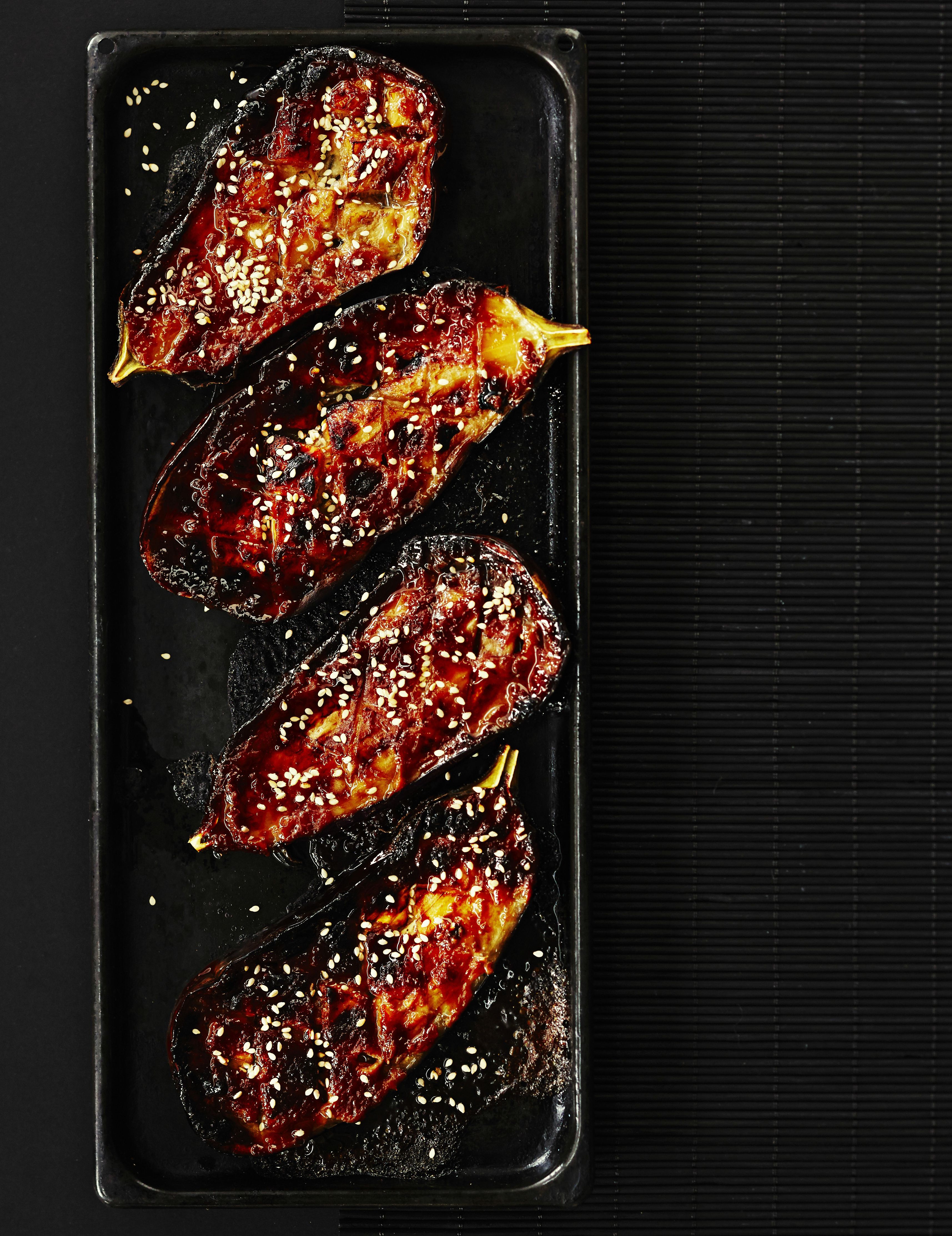 Japanilaiset maut ovat olleet nosteessa jo hetken aikaa. Nämä misomunakoisotkin ovat jo tuttu juttu, mutta ansaitsevat paikkansa arkiruokalistalla, sillä ne maistuvat ylijäämäriisin kanssa eikä niiden valmistuksessa kestä puolta tuntia pidempään, jos munakoisot ovat kohtuu pieniä. Raikas kaalisalaatti lisukkeena tasapainottaa umamisen aterian.