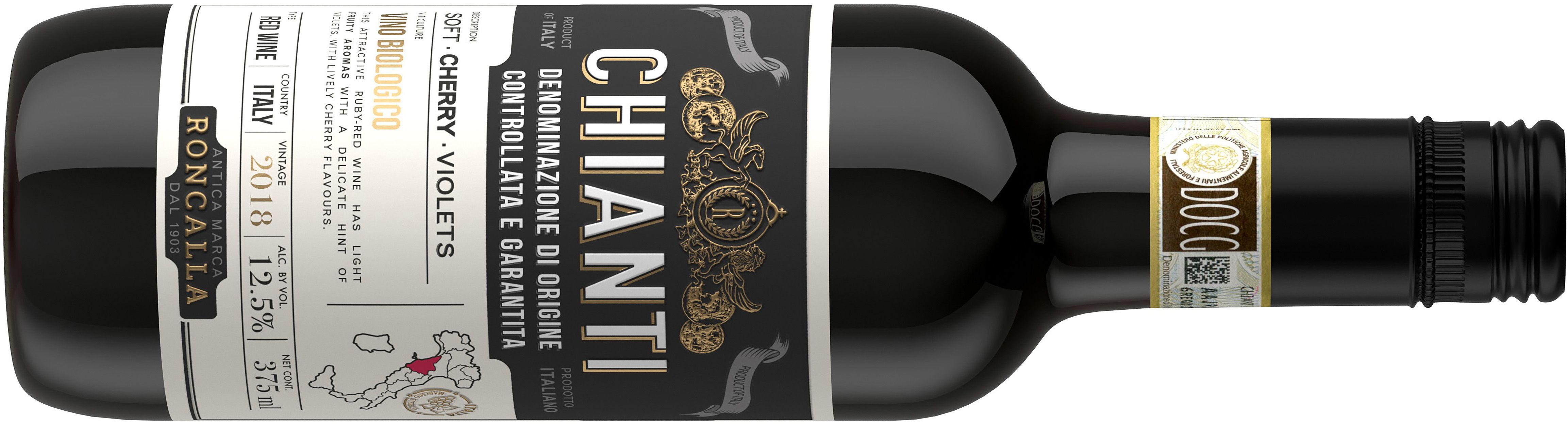 Mikä? Puolikkaaseen pulloon pakattu Roncalla Chianti 2018, 6,90 e / 0,375 l, on kuin tehty spagetti bolognesen, lasagnen ja muiden lihapastojen seuraan.