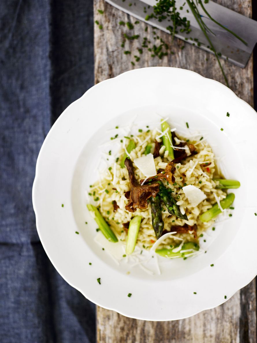 Laatutuottajan mineraalinen pinot grigio täydentää kokonaisuuden kun pöytään kannetaan parsarisottoa.