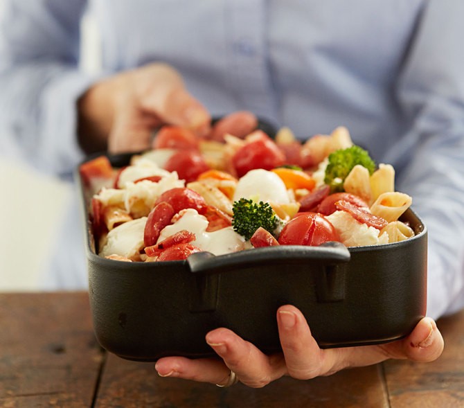 Chorizo-kasvisgratiiniin uppoaa niin pikku pätkä chorizoa kuin runsaasti kasviksia, porkkanoita, sipulia, paprikaa ja parsakaalia. Gratiinikastike syntyy maidosta tai sekoittamalla avatun kermapurkin kerman joukkoon vettä. Tomaattimurskasta hautuu itse tehty tomaattikastike. Tulisen ruuan ystävä voi silputa tomaattikastikkeen joukkoon chiliä, yrttien ystävä tuoreita yrttejä. Upota kasvisten ja kastikkeiden joukkoon eilisen päivän pasta ja gratiini on valmis uuniin kypsymään.