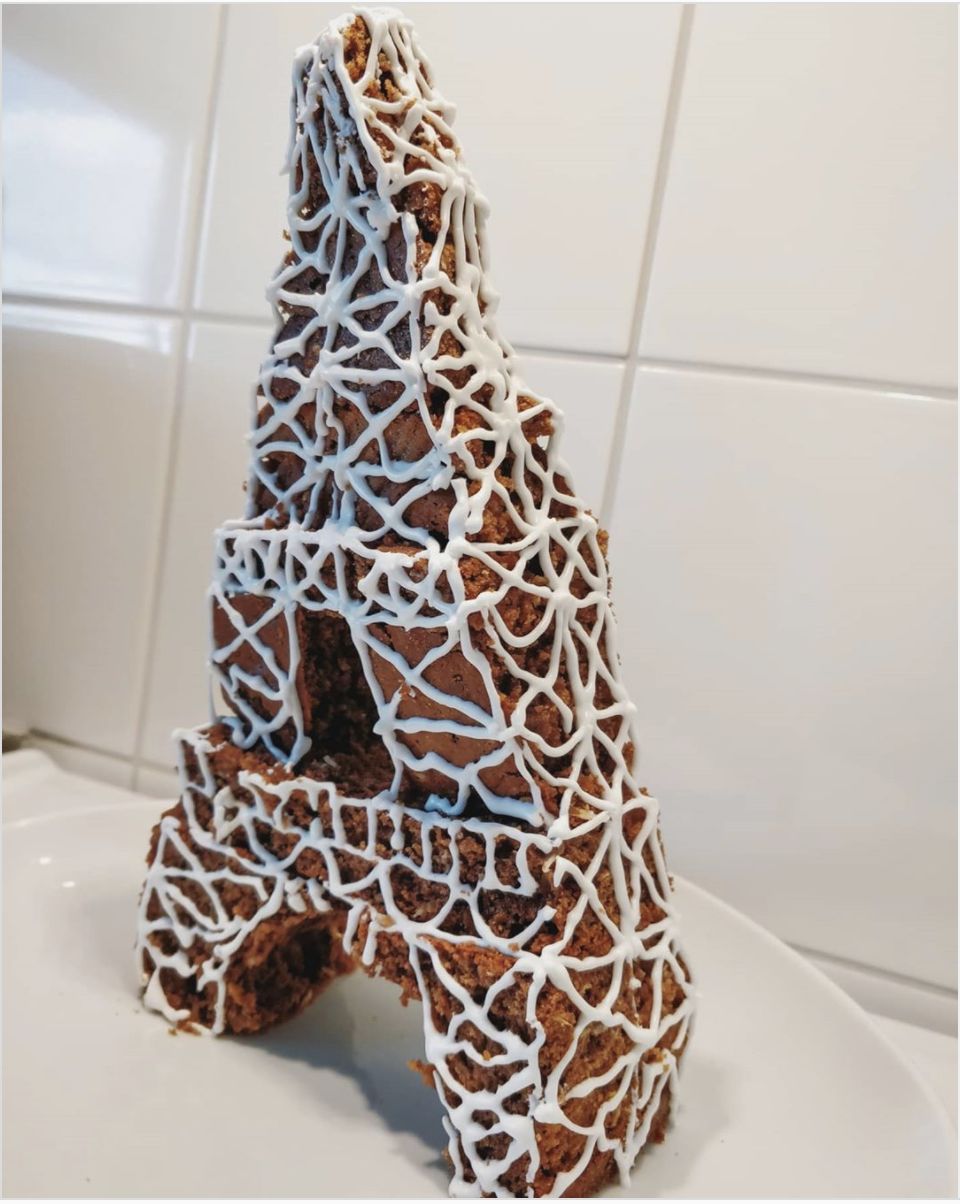 Kasper: Kuinka kekseliästä rakentaa mokkapaloista torni! Uskomatonta, että tässä on osattu ajatella x-akselin sijaan ylöspäin. Tämä uhmaa jopa painovoimaa!