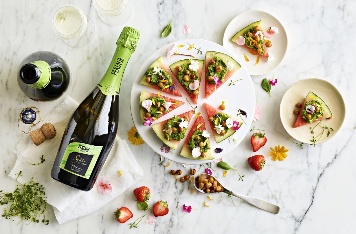 Melonipalan päälle kootut sormisyötävät ovat upea herkku. Valitse suupalojen kanssa juomaksi ylellinen ja vegaanisertifioitu luomuprosecco.