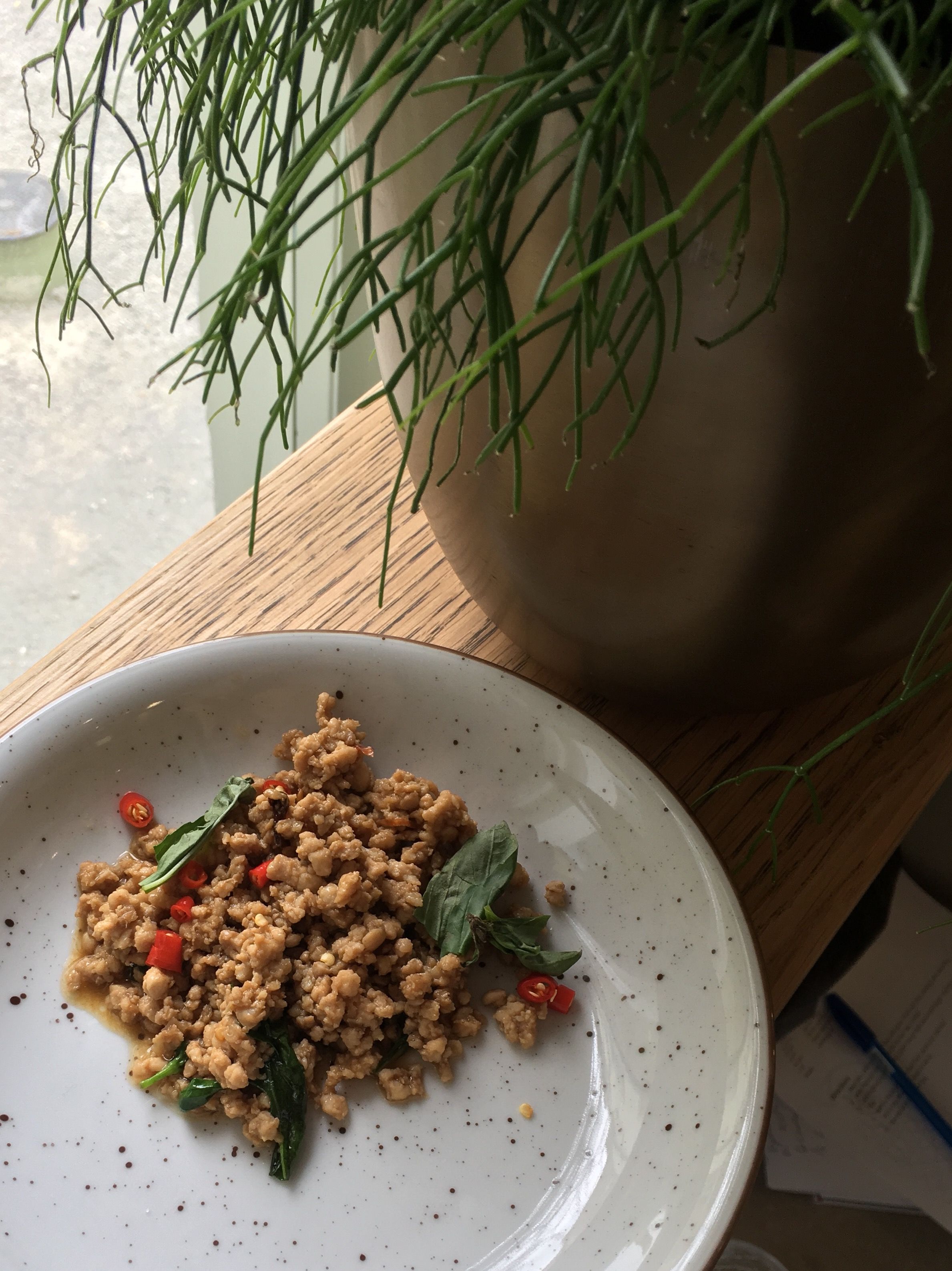 Pensirin opastuksella koekokkauksessa valmistui Pad kra-pow gai, eli jauhettua kanankoipea valkosipulin, chilin ja osterikastikkeen kanssa. Opetuskeittiössä tehtäväksi jäi esivalmisteltujen ainesten kypsentäminen. Monivaiheisemmat, autenttisen tuliset ruokalajit, kuten Laab pla -kalasalaatti ja Tod man goong -rapukakut saatiin tällä kertaa nauttia pöytiin tarjoiltuna.