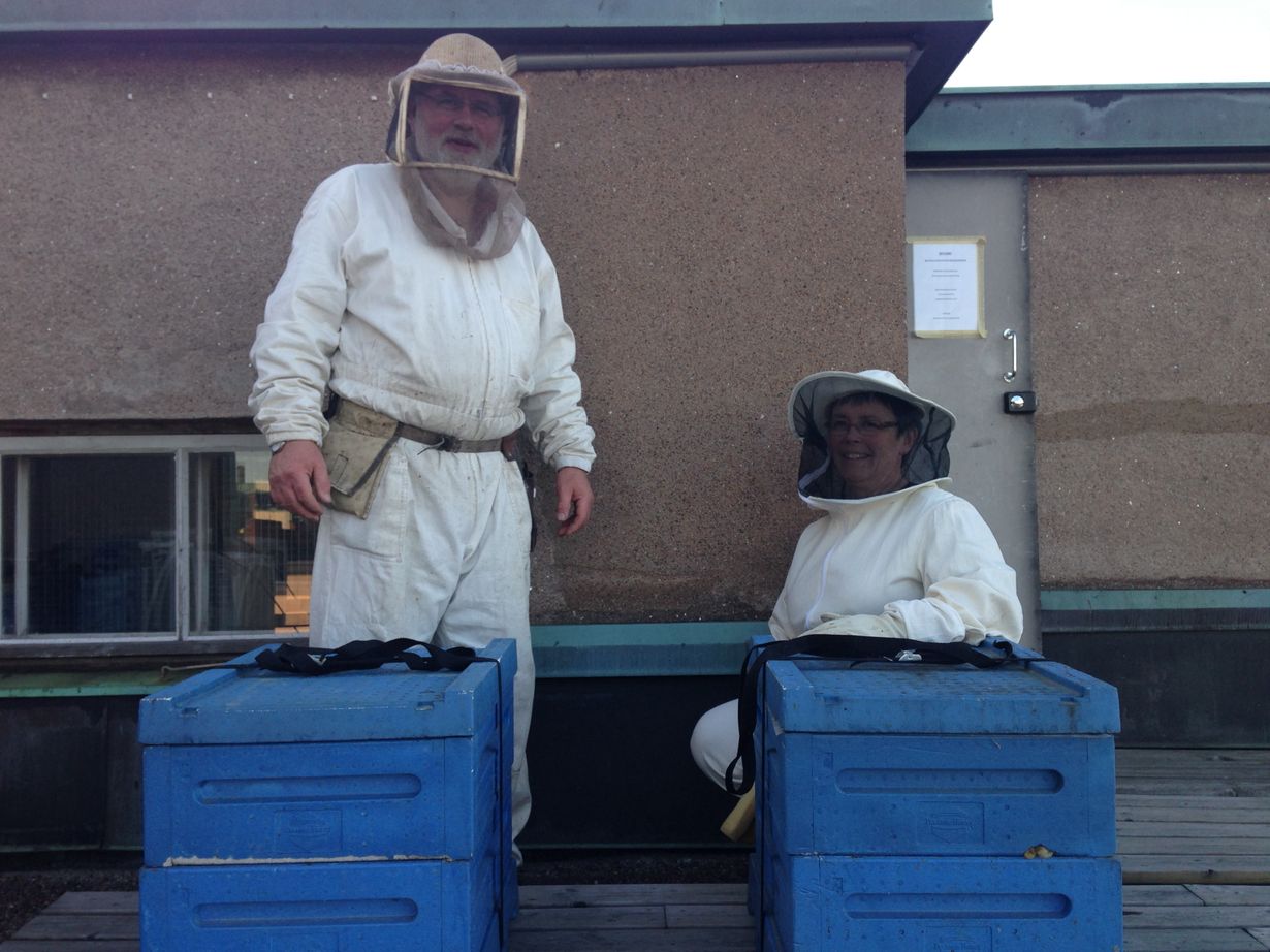 Bjarne ja Mia Bruce pitävät mehiläisistä hyvää huolta. Kuva: Anu Brask.