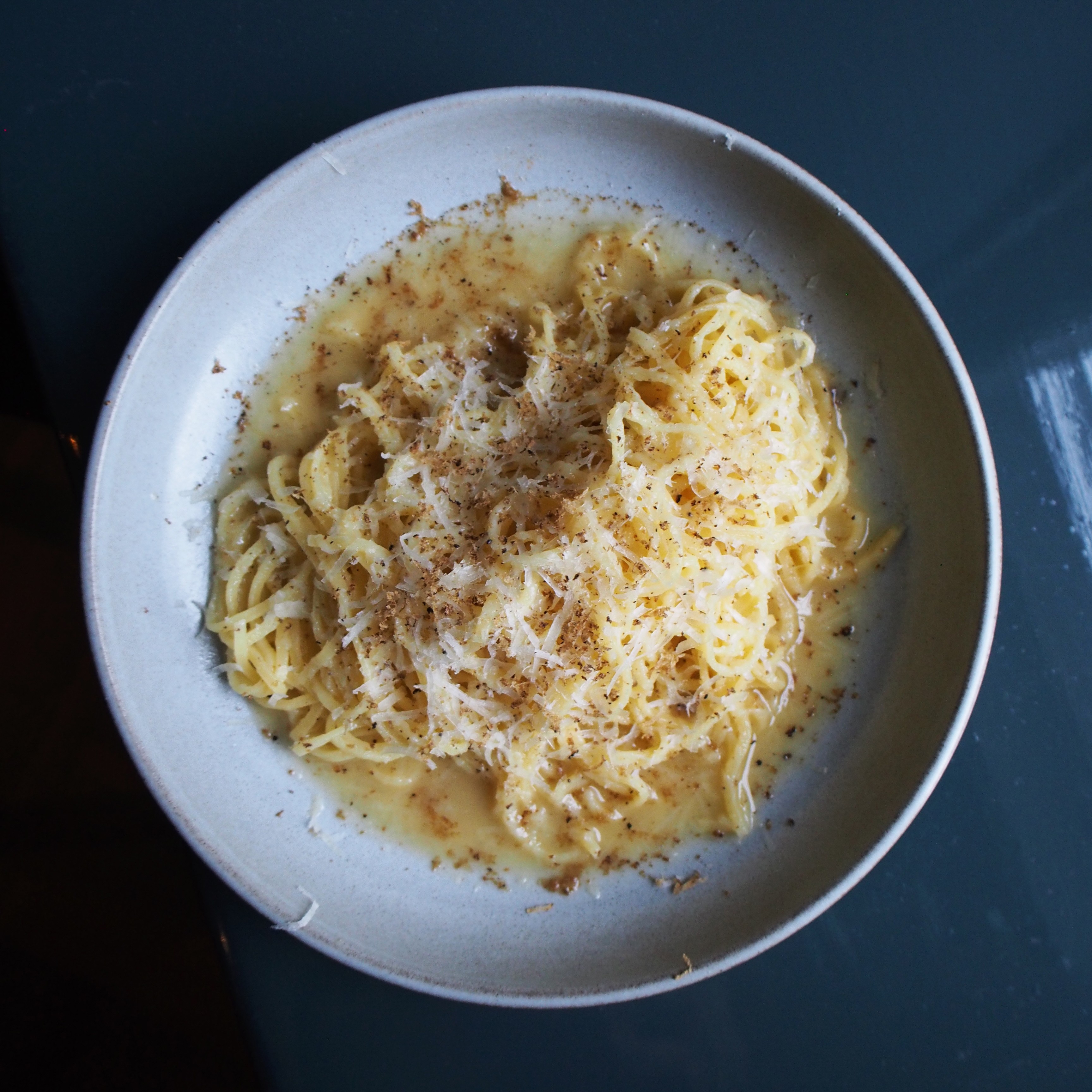 Tryffeliltä maistuva pippuri-juustopasta katoaa suihin ennätysvauhdilla. Myös ruskean lihakastikkeen peittämä risotto on simppeli makupommi. Koristeet on aseteltu atuloilla.