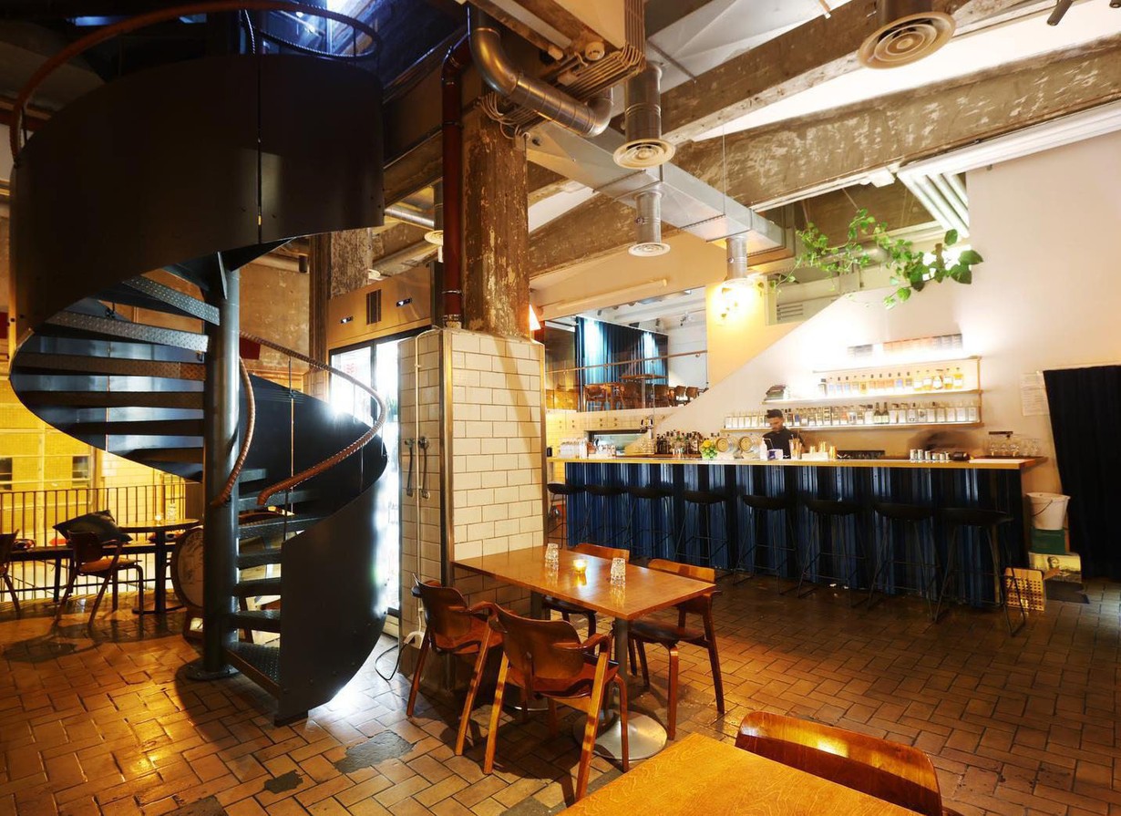 TEOLLISUUSHENKISEN ravintolan seinillä kulkee putkia. Tila on suunniteltu harkiten, sillä karun oloisista puitteista huolimatta tunnelma on lämmin, kiitos valaistuksen. Akustiikkakin pelaa. Cocktaillistalla korostuvat tislaamon omat tuotteet. Jopa käsidesi on omaa tuotantoa. The Helsinki Distilling Company on palkittu tislaamo. Tuulikaapin seinä on diplomeja täynnä.