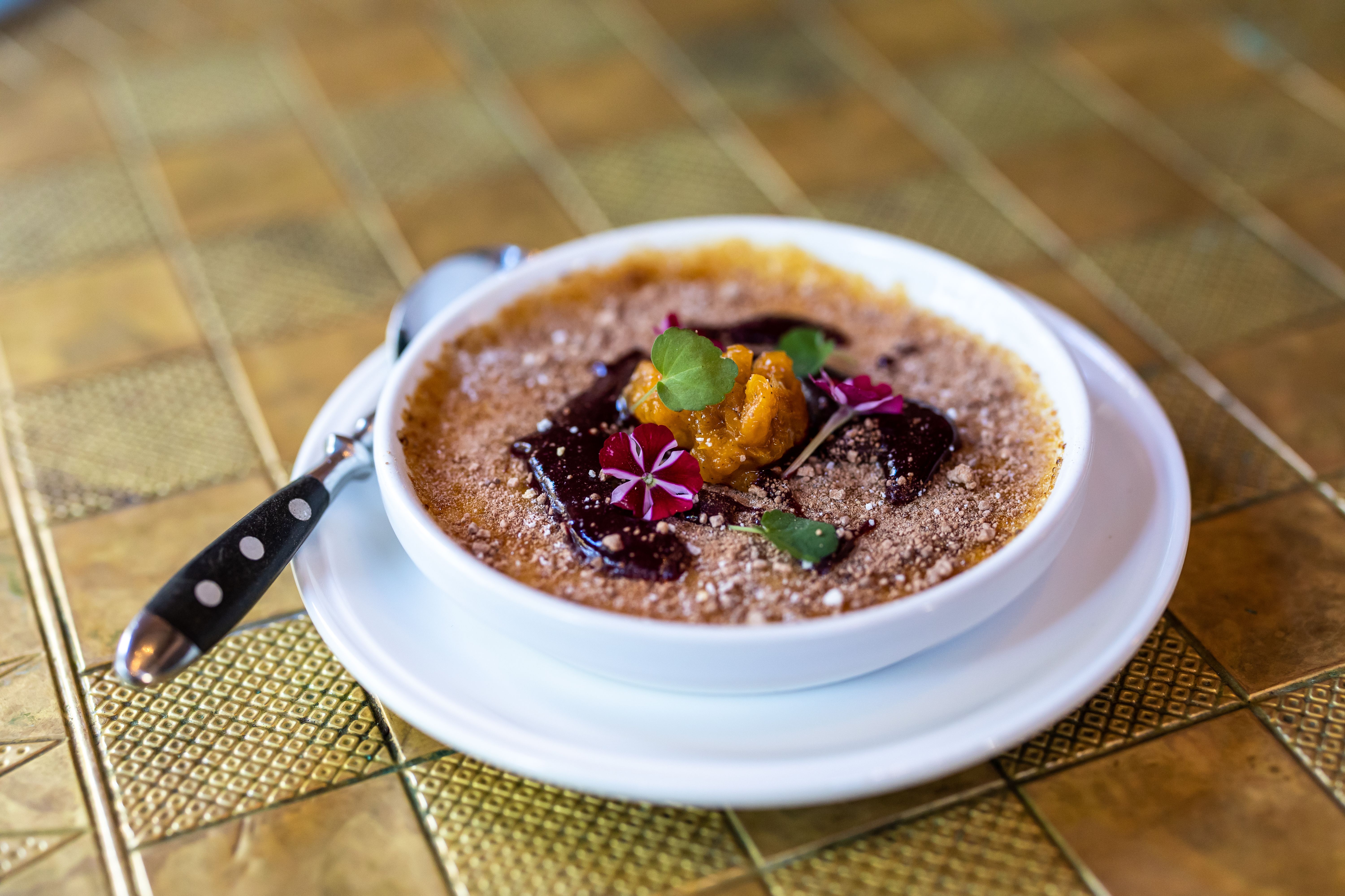 Crème brûlée -paahtovanukas (13 e) on huippu. Itse vanukas on tuhtia kermaista herkkua ja kuorrutus kovan rapea. Erinomaiselle tasolle sen nostaa mustikkasose, jota ei ole pilattu liialla sokerilla.