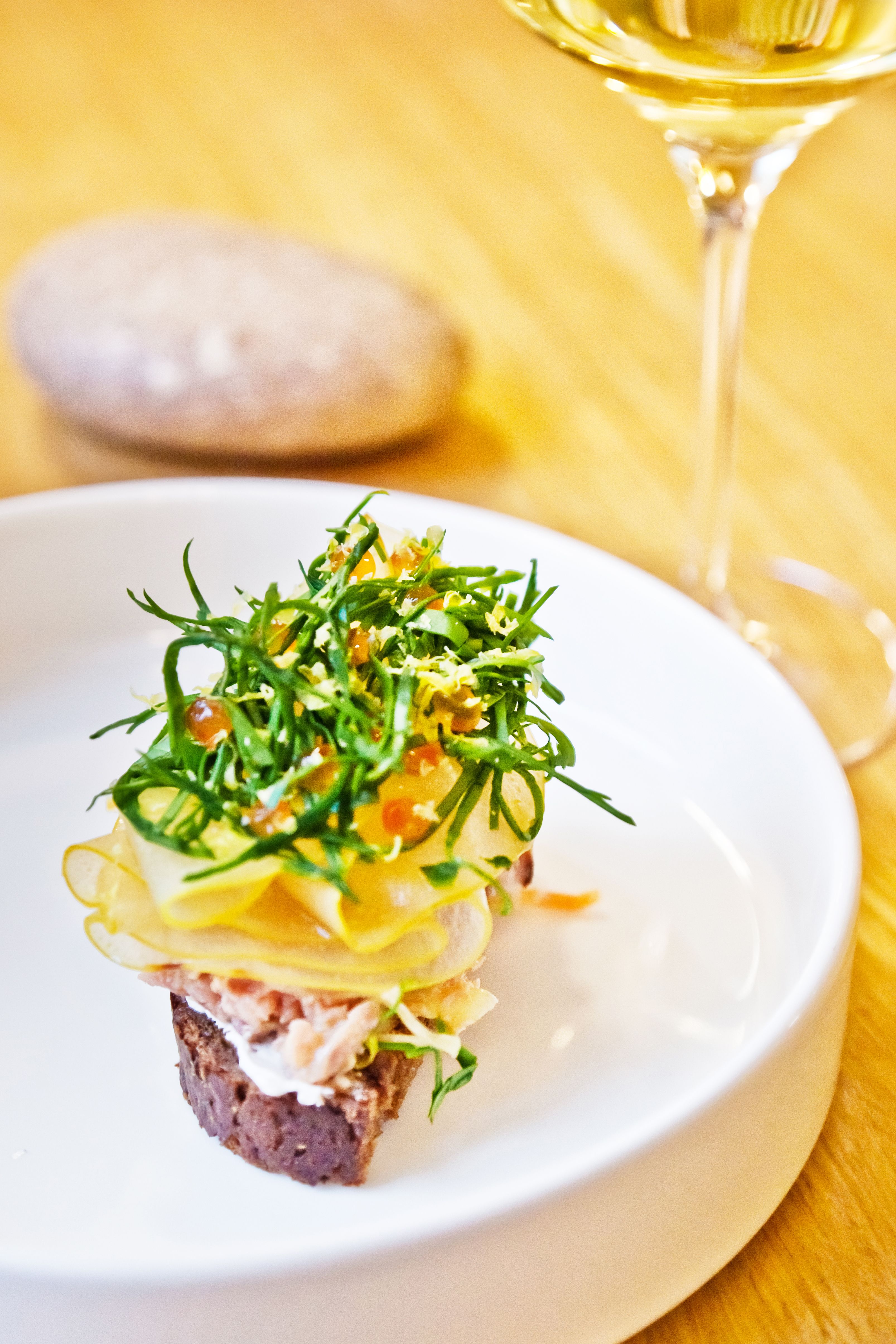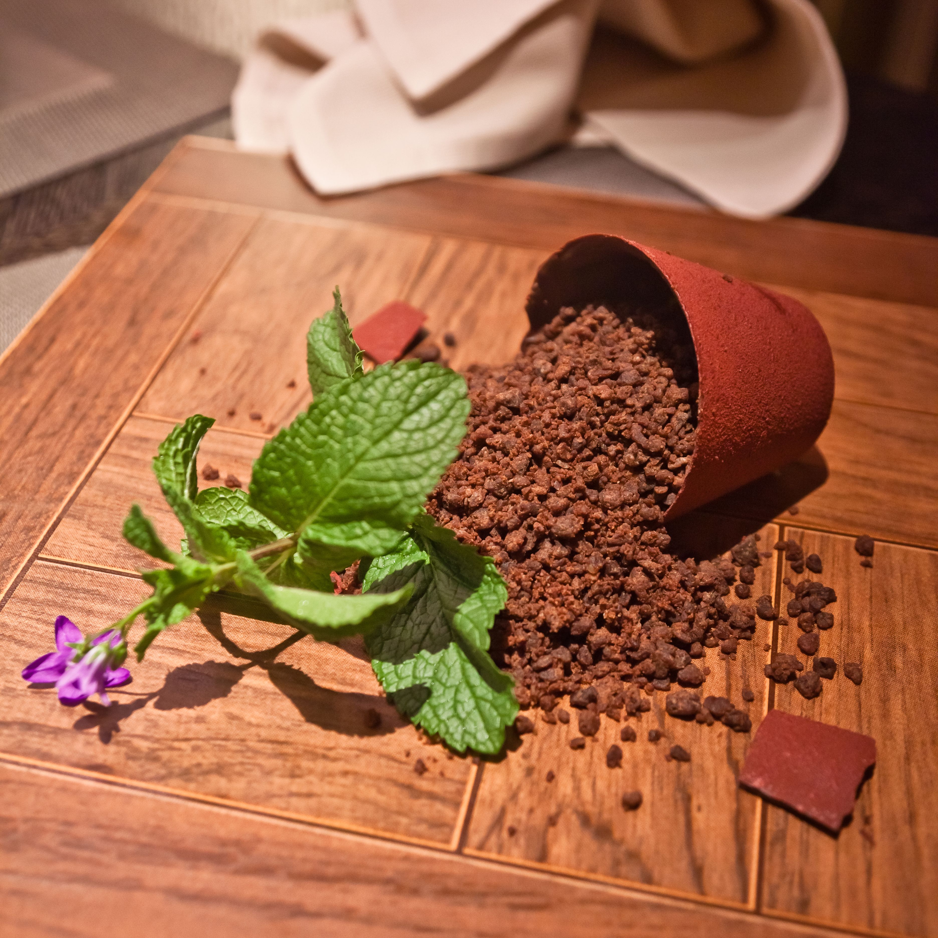 CoCoCon Igor Grishechkin leikkisä tyyli näkyy erityisesti jälkiruuissa. Suklainen kukkaruukku on haljennut pudotessaan levittäen suklaisen ”mullan” ympäriinsä. Suolainen maissijäätelö tarjoillaan popcornin tapaan pienestä pahvikiposta ja crème brûlée niin taidokkaana kohokuvana, ettei sitä melkein tohtisi rikkoa. Välillä kikkailu menee liiallisuuksiin. Mutta pääruuista täytetty viiriäinen, jonka sisältä karpalokastike valuu lautaselle, on sekä hauska että herkullinen annos. Lisukkeena tarjottu rosmariinilla ja hunajalla marinoitujen pikkukäpyjen väkevän pihkainen maku kruunaa kokonaisuuden.