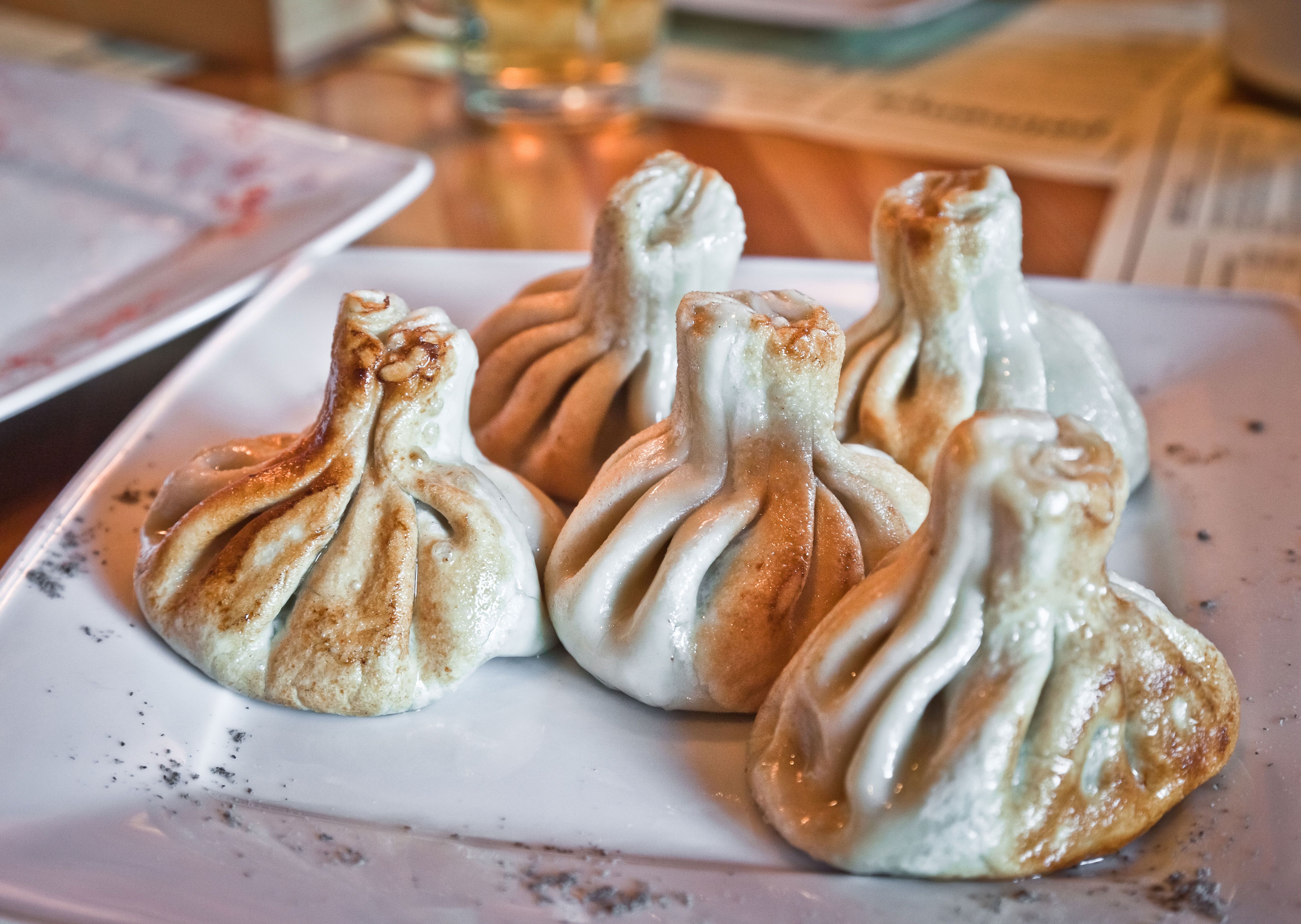 Hatsapuri. Höyryävän kuumaa georgialaista hatsapuri-juustoleipää on pakko saada jokaisella Pietarin vierailulla. Rennosta Hachapuri i Vino -kortteliravintolasta saa paitsi erityisen hyviä suluguni-juustolla ja pinaatilla täytettyjä hatsapureja, myös mahtavia pähkinätahnalla täytettyjä marinoituja munakoiso- ja paprikarullia alkupalaksi. Nappaa hatsapurin kylkeen lasi kakhetialaista oranssia Kakhuri-viiniä, joka on ikäännytetty kuorien ja siementen kanssa kverissä.