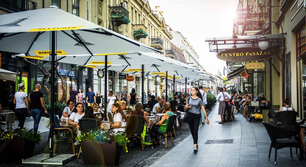 Sisämaassa sijaitsevan Vilnan tunnelma on Baltian pääkaupungeista keskieurooppalaisin. Kukkuloiden ympäröimä kaupunki on helppo hahmottaa kävellen. Sen ytimessä on Pohjois-Euroopan suurin yhtenäinen vanhakaupunki, jossa on ravintoloita vieri vieressä. Savicias-kadun tunnelma muuttuu viikonloppuisin, kun liikenne suljetaan ja ravintoloitsijat nostavat pöydät ja tuolit kadulle.