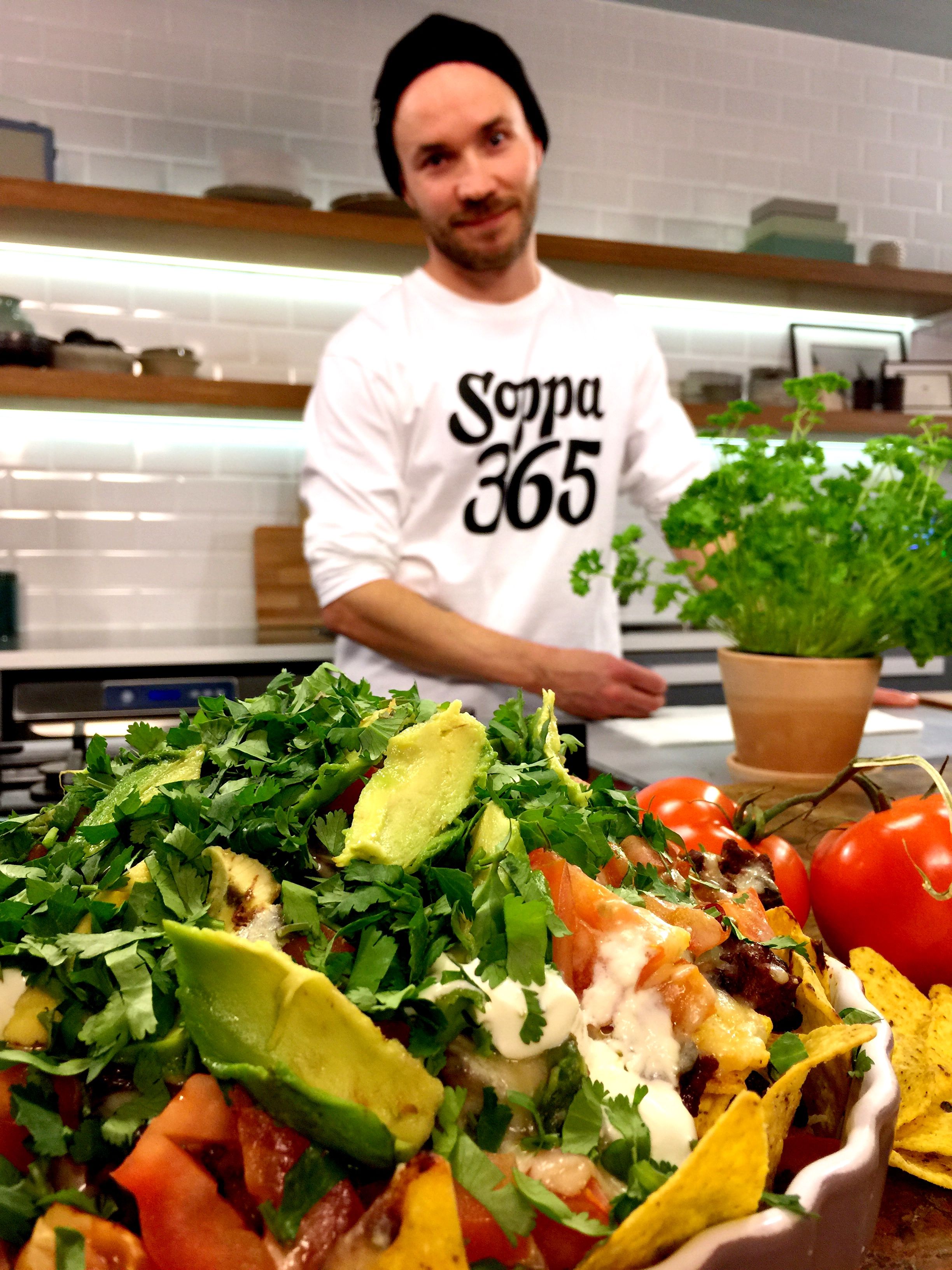 Ali tekee Soppa365-tv:ssä hauskan nacholautasen chili con carnella.