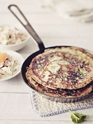 Amerikkalainen pannukakku, uppomuna ja savulohi