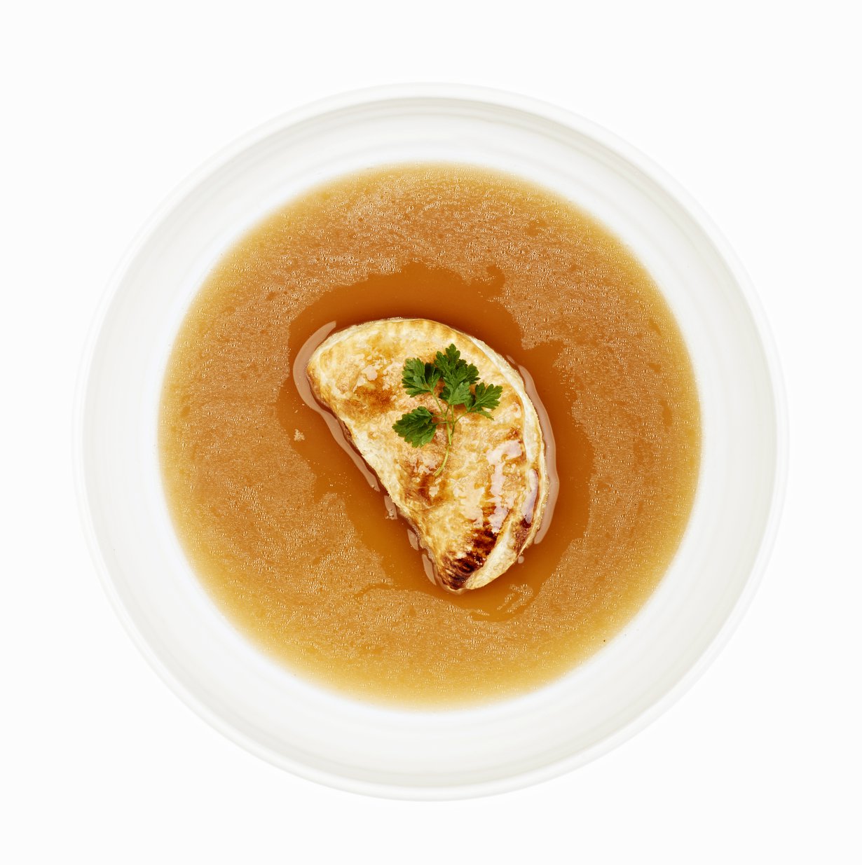 Kuumenna liemi. Lisää suola ja tilkka sherryä. Laita lautasille pasteija ja kaada lientä ympärille.