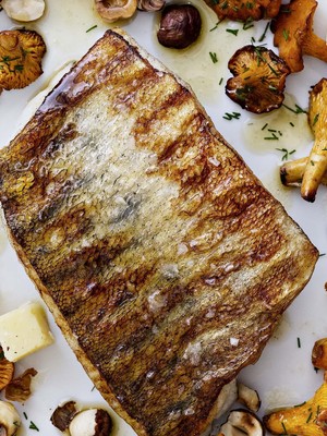 Rapeaksi paistettu kuha ja ruskistettu voikastike