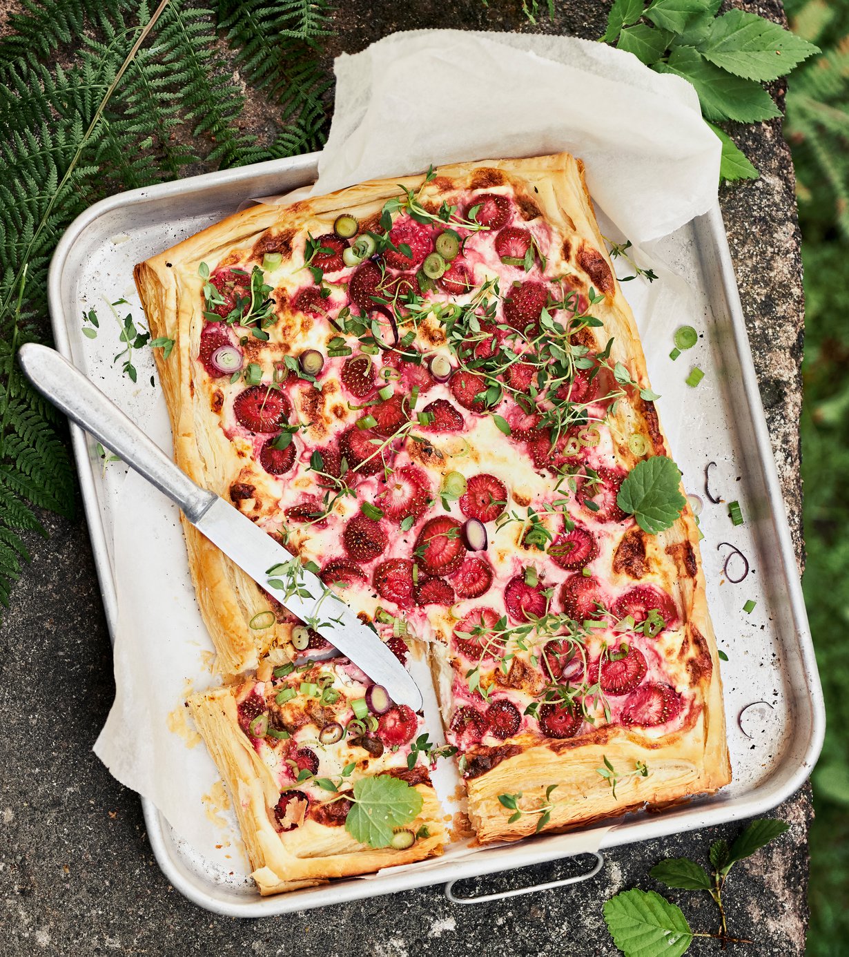 Pikavauhtia syntyvän piirakan juju on suolaisen fetan ja makeiden mansikoiden onnellinen liitto, jonka sinetöivät chili ja sitruuna.