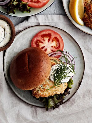 2. Leikkaa sämpylät pituussuunnassa kahtia. Kuumenna paistinpannu ja paahda sämpylöitä ensin leikkuupinta alaspäin ja sen jälkeen ulkopuolelta, kunnes ovat kauttaaltaan paahtuneita ja kauniin kullanruskeita.
