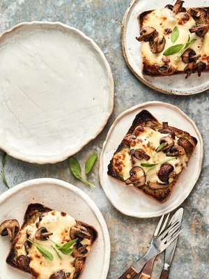- Paista pizzoja vielä 10 minuuttia. Viimeistele pizzat rucolanlehdillä ja pirskottele päälle neitsytoliiviöljyä. Tarjoa heti.