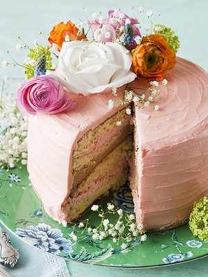 Pursota nauhoille raita vaniljakreemiä ja mansikkaa. Taita nauhat kolmeen osaan siten, että sauma tulee keskelle alas. Leikkaa nauhat 20 cm:n pituisiksi pitkoiksi. Nostata pitkot