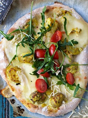 - Viipaloi tomaatti, sipuli ja lehtikaali (poista kova ruoti). Sekoita loraus öljyä ja suolaa lehtikaaliin.