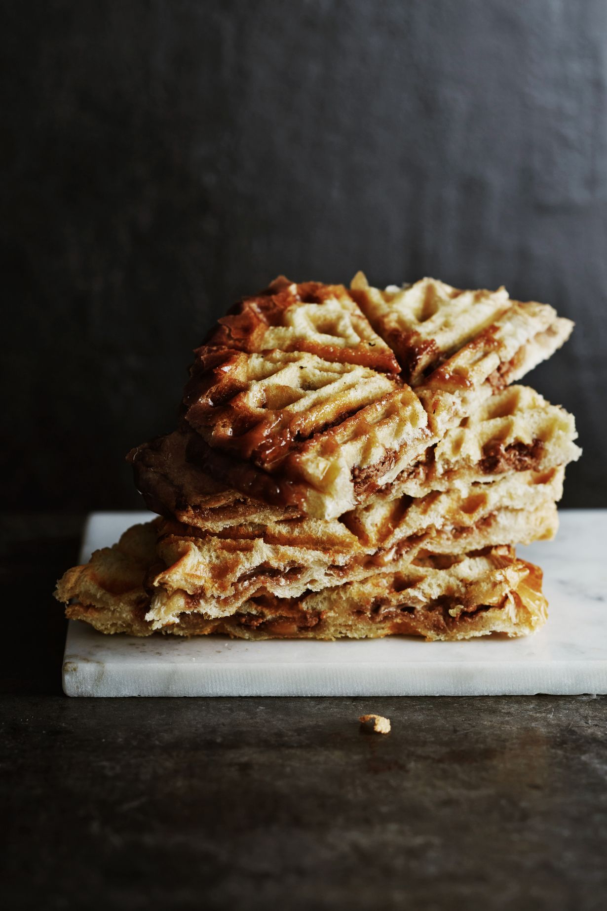 2. Täytä puolet leivistä suklaasivuilla ja nosta kansi päälle. Grillaa voileipägrillissä tai vohveliraudan välissä.