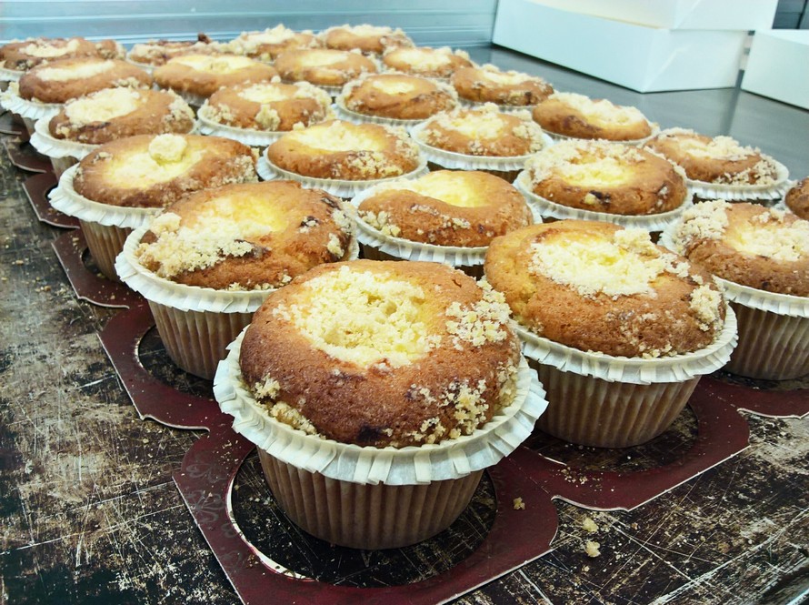 Sekoita voi, sokeri ja jauhot murumaiseksi seokseksi. Ripottele muffinien päälle ennen paistoa.