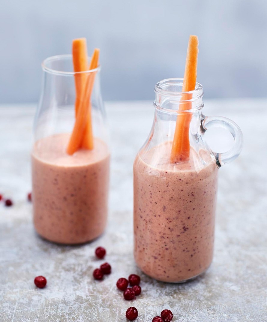 - Kuori ja raasta porkkana. Mittaa kaikki ainekset tehosekoittimeen ja anna käydä tasaiseksi.