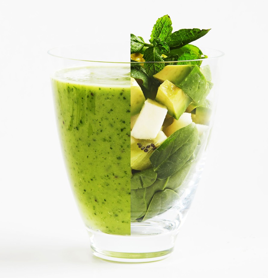 Maukas vihersmoothie syntyy vihreistä hedelmistä, pinaatista ja mintusta.
