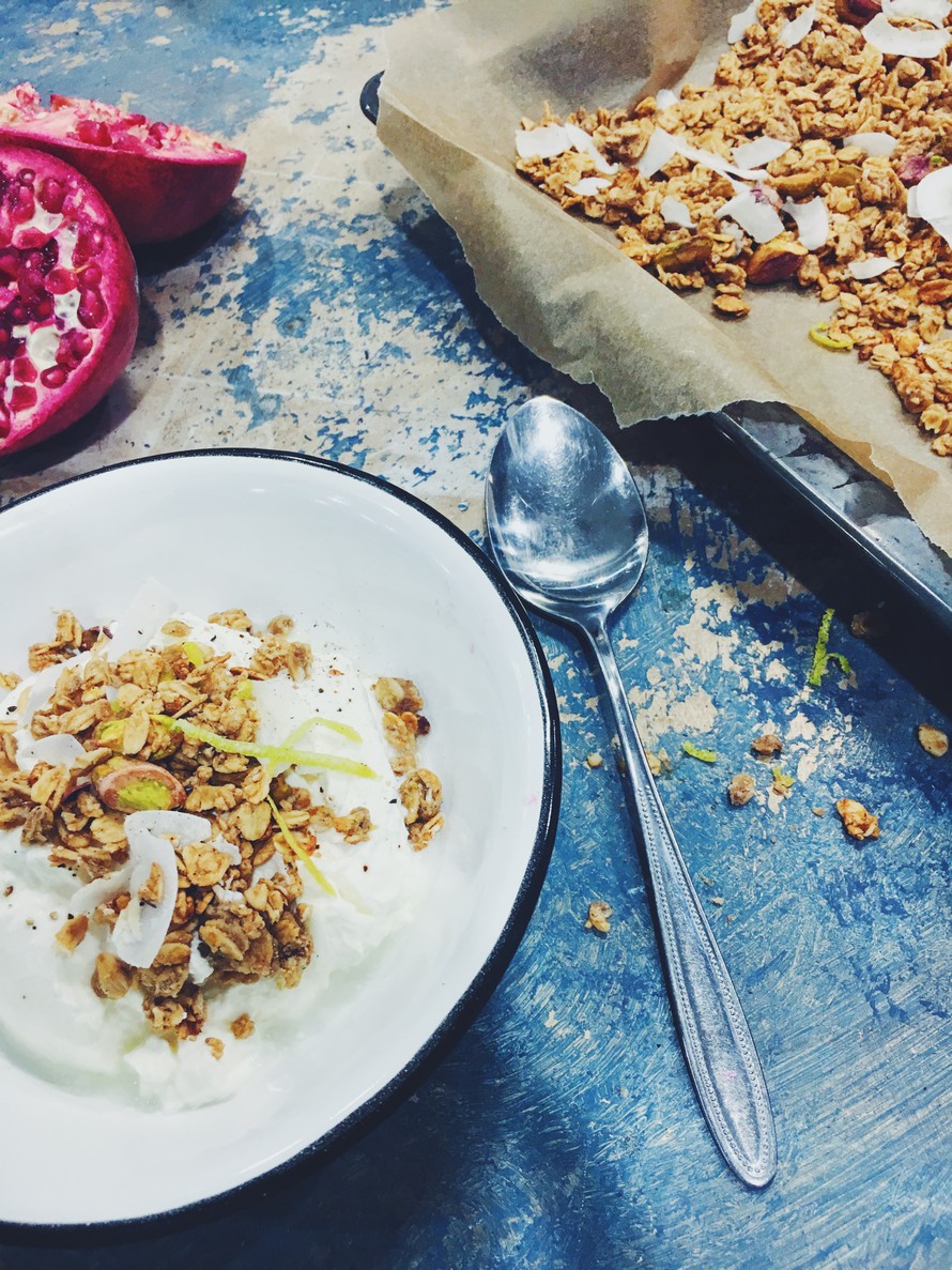 Astetta jännittävämpi granola saa kirpeyttä sitruunasta ja pienta potkua mustapippurista. Rapeaa luksusta aamuihin!