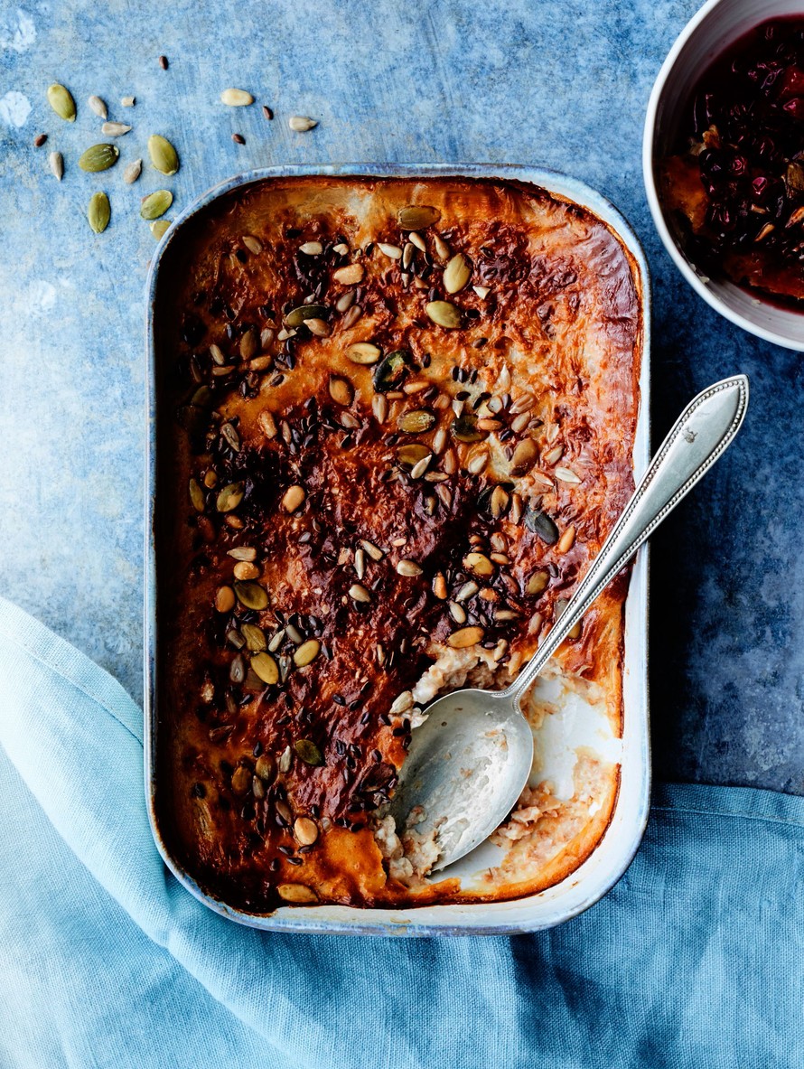 Hitaan aamun puuro muhii uunissa kypsäksi kuin itsestään. Siemenillä rikastettu puuro pitää nälän poissa pitkään. Kruunaa puuroannos vaniljalla maustetulla omena-puolukkakeitolla.