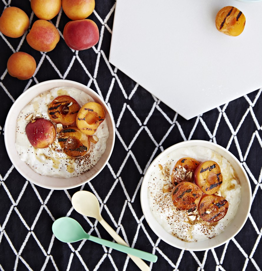 Grillatut aprikoosit ja kanelijogurtti