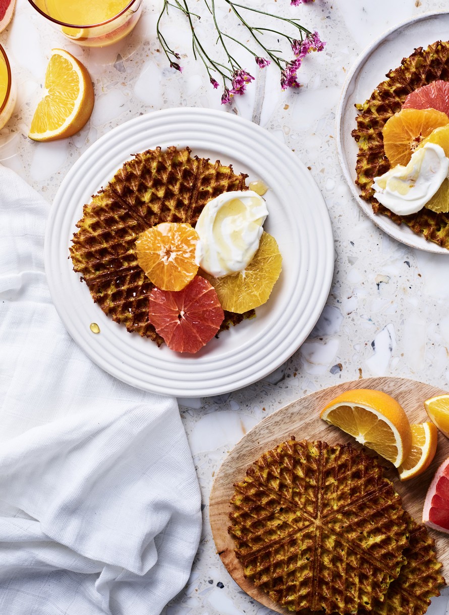 Taikina annostellaan kuumalle, kevyesti öljytylle raudalle, ja pian on valmista! Astetta terveellisemmät aamiaisvohvelit maistuvat paksun jogurtin ja sitrusten seurassa.