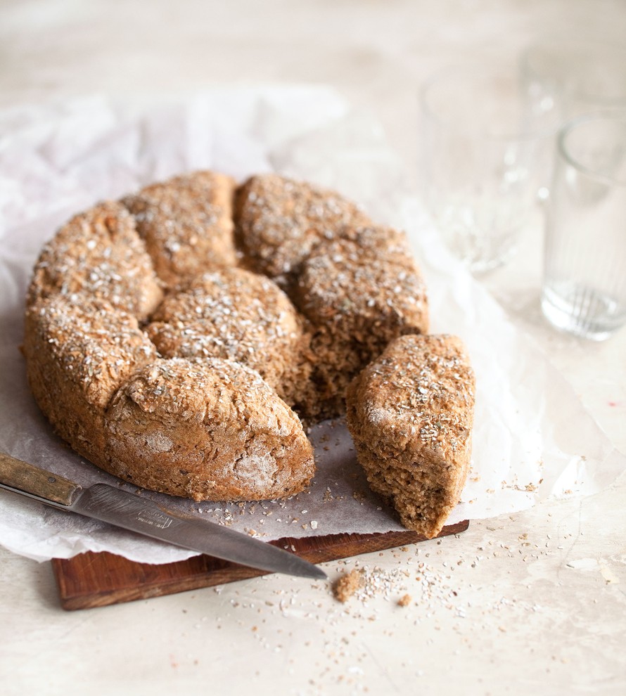 - Ripottele kohonneen leivän pinnalle koristeeksi ruisleseitä ja paista leipää noin 45 min. Anna leivän jäähtyä, ennen kuin irrotat sen vuoasta.