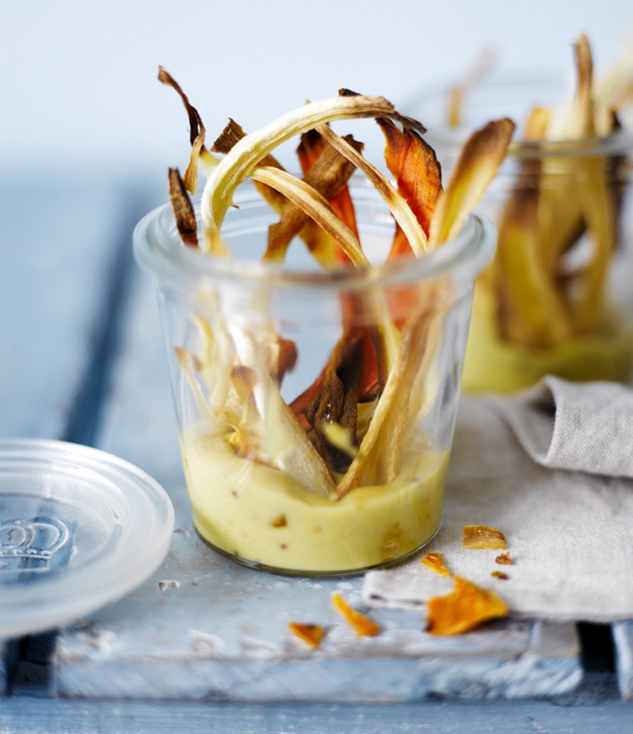 Rapeat juuressipsit majoneesidipin kanssa sopivat vaikkapa aterian aloitukseksi.