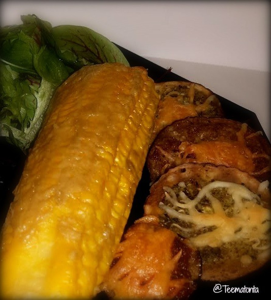 Vinkki! Mikäli et halua kuorruttaa itseäsi wasabilla, niin nauti maissi haarukalla ja pihviveitsellä varustautuneena.